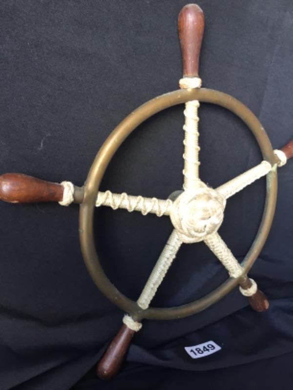 Brass, Wood, Rope Ships Wheel Lot 1849