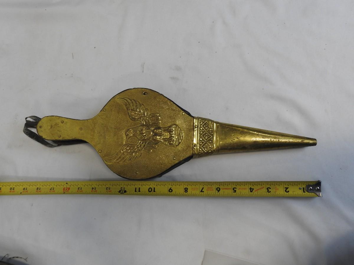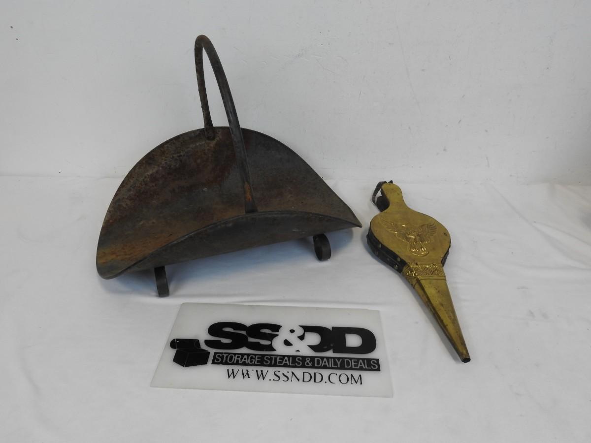 Brass/Leather/Wood Fire Bellows & Metal Fire Wood Log Holder/Carrier