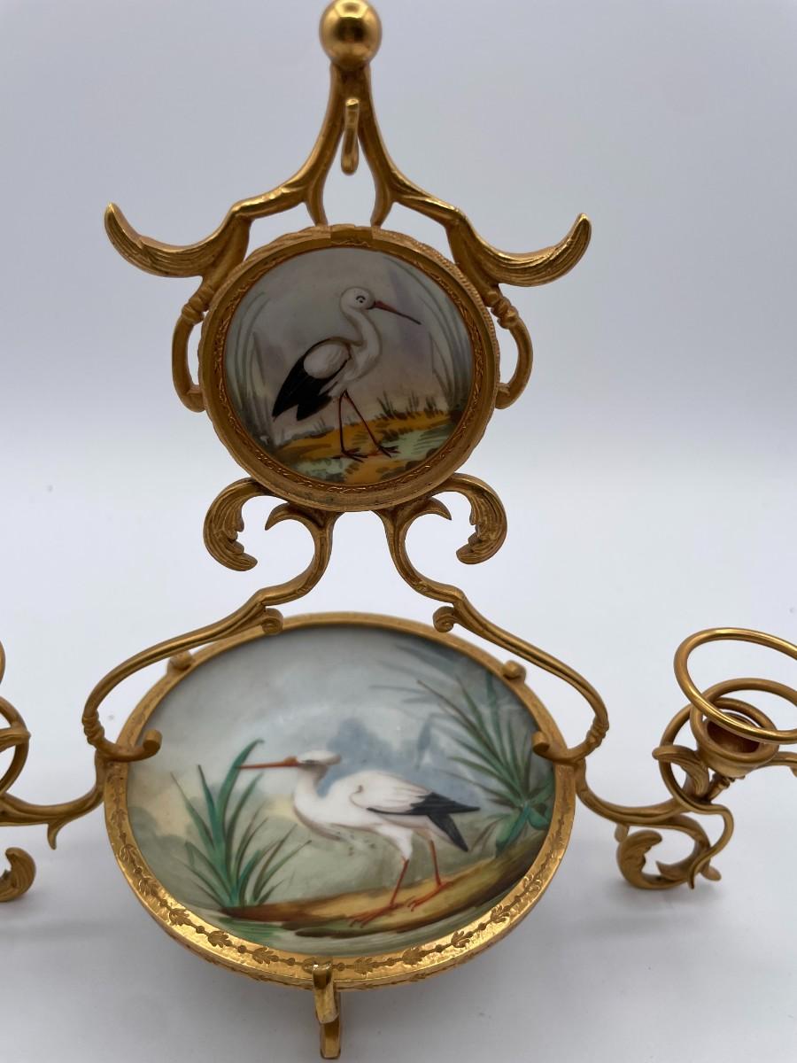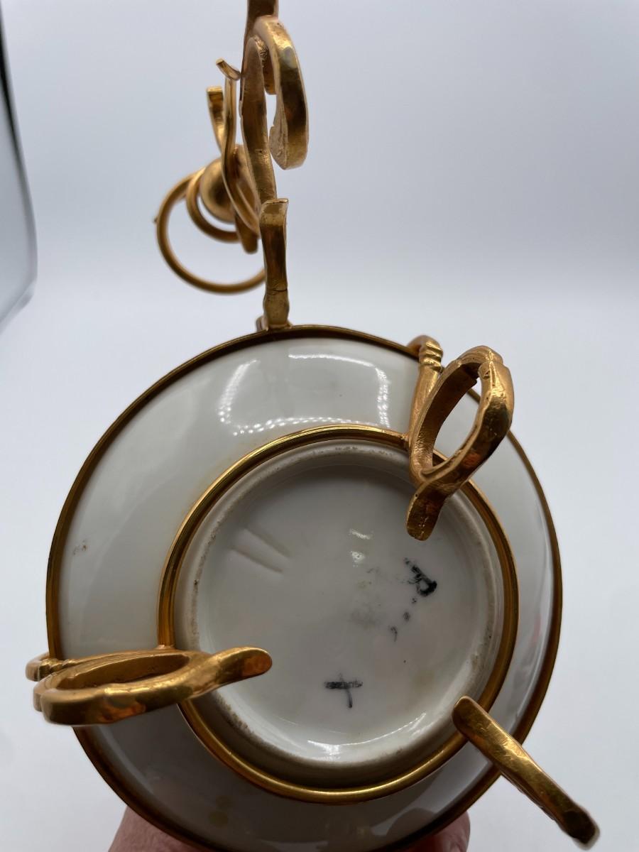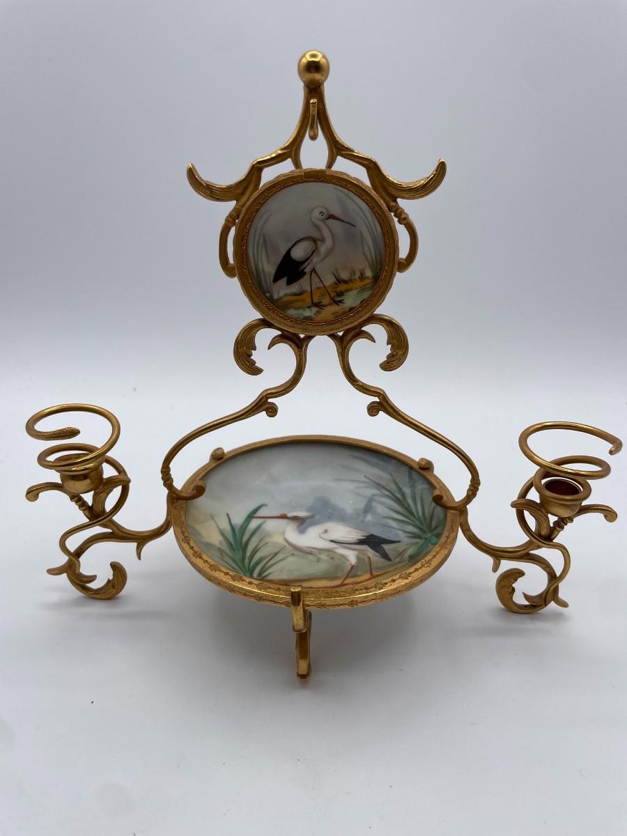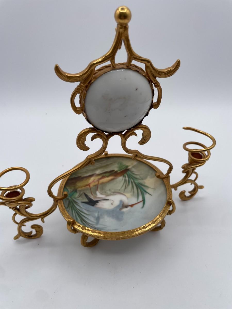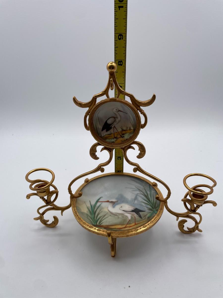 Brass & Porcelain Pocket Watch Holder; 9" x 9", 2" opening w/hook
