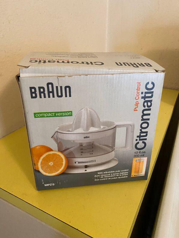 Braun Citromatic juicer in the box. Features pulp control.