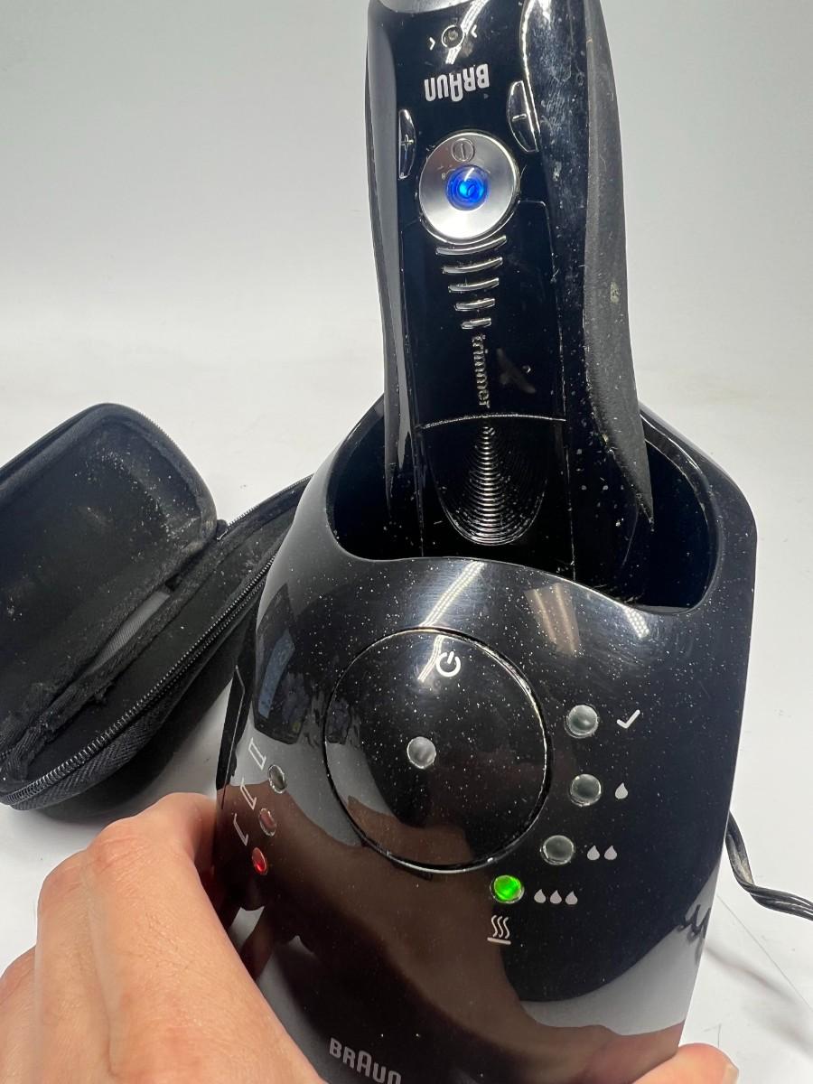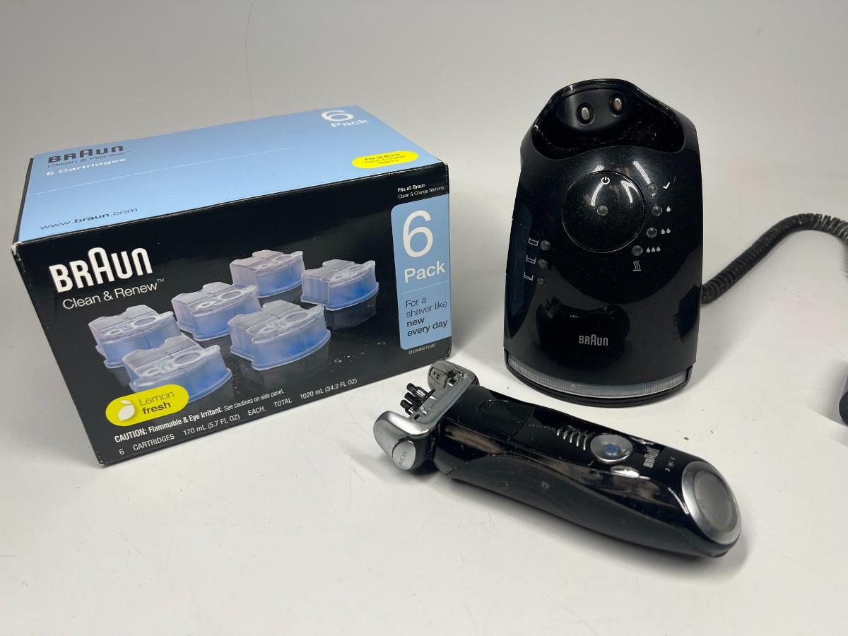 Braun Electric Rechargeable Razor Shaver with New Lemon Fresh Cartridges. Plugged in and seems to charge.