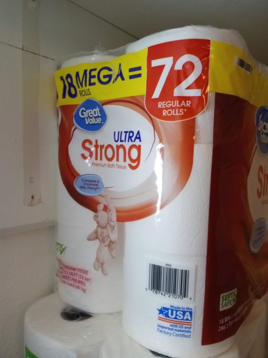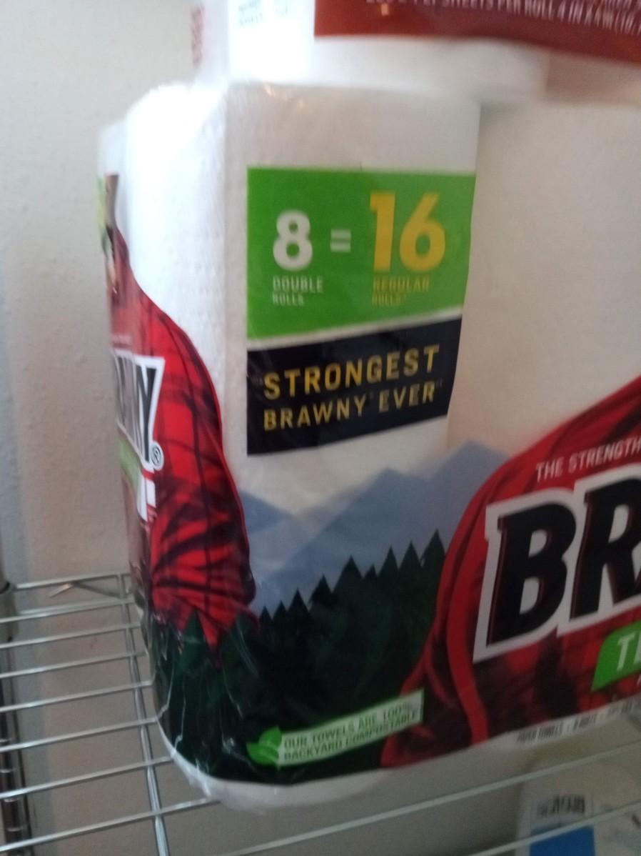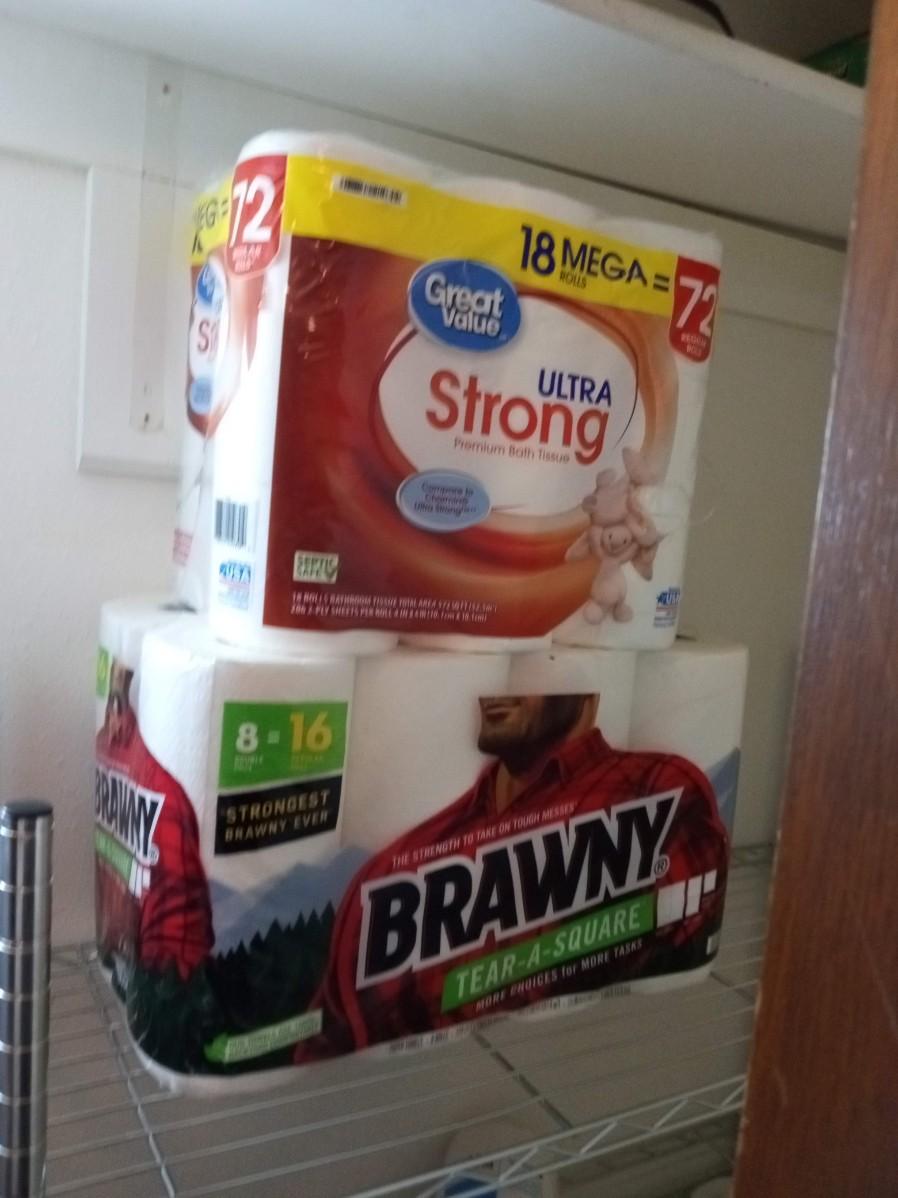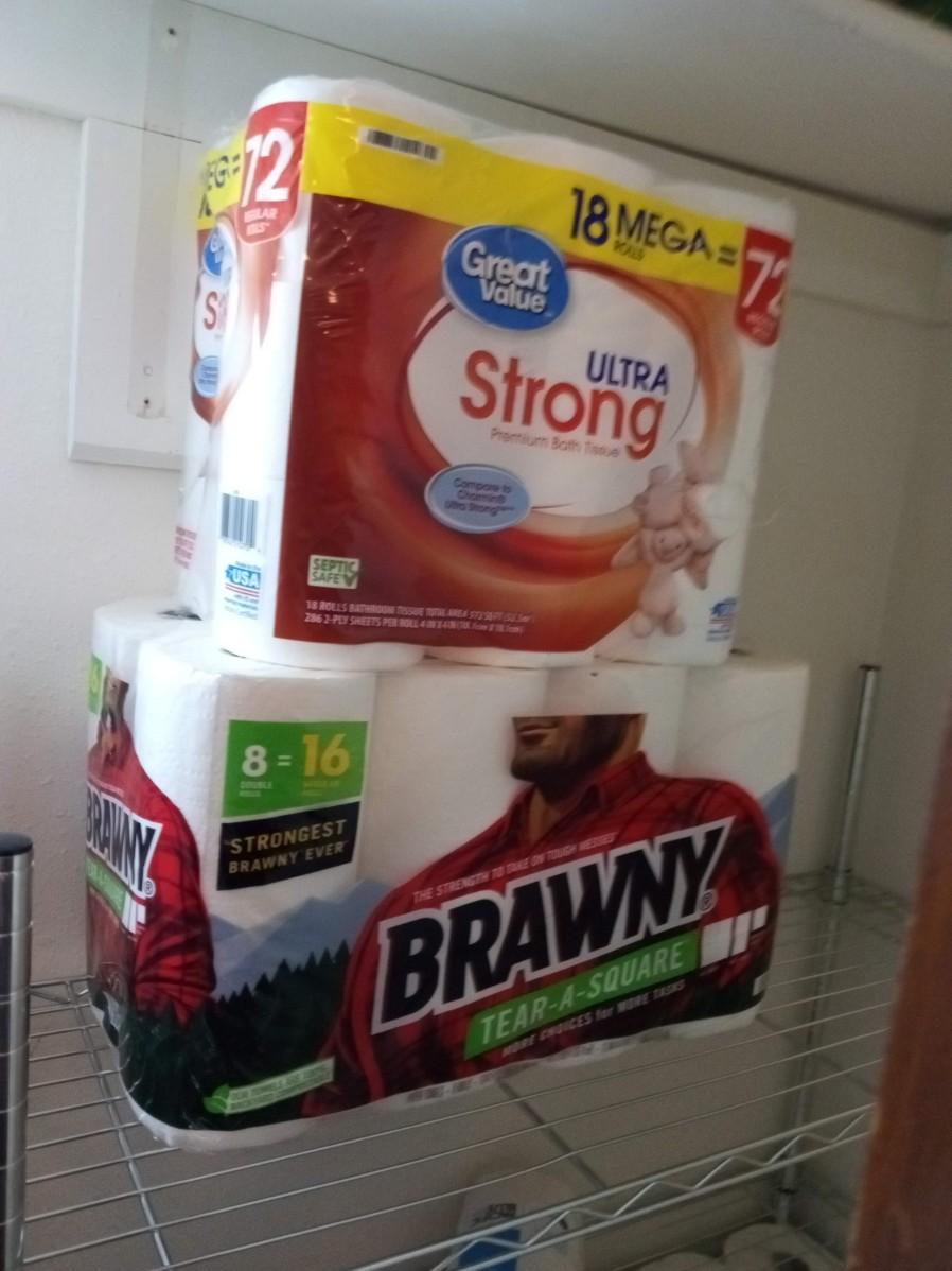 BRAWNY PAPER TOWELS AND GREAT VALUE TOILET PAPER