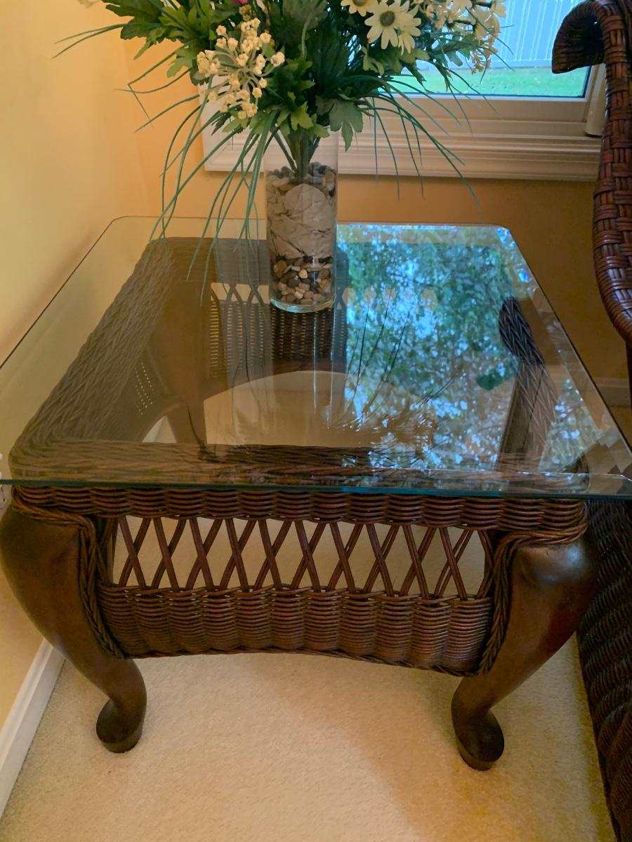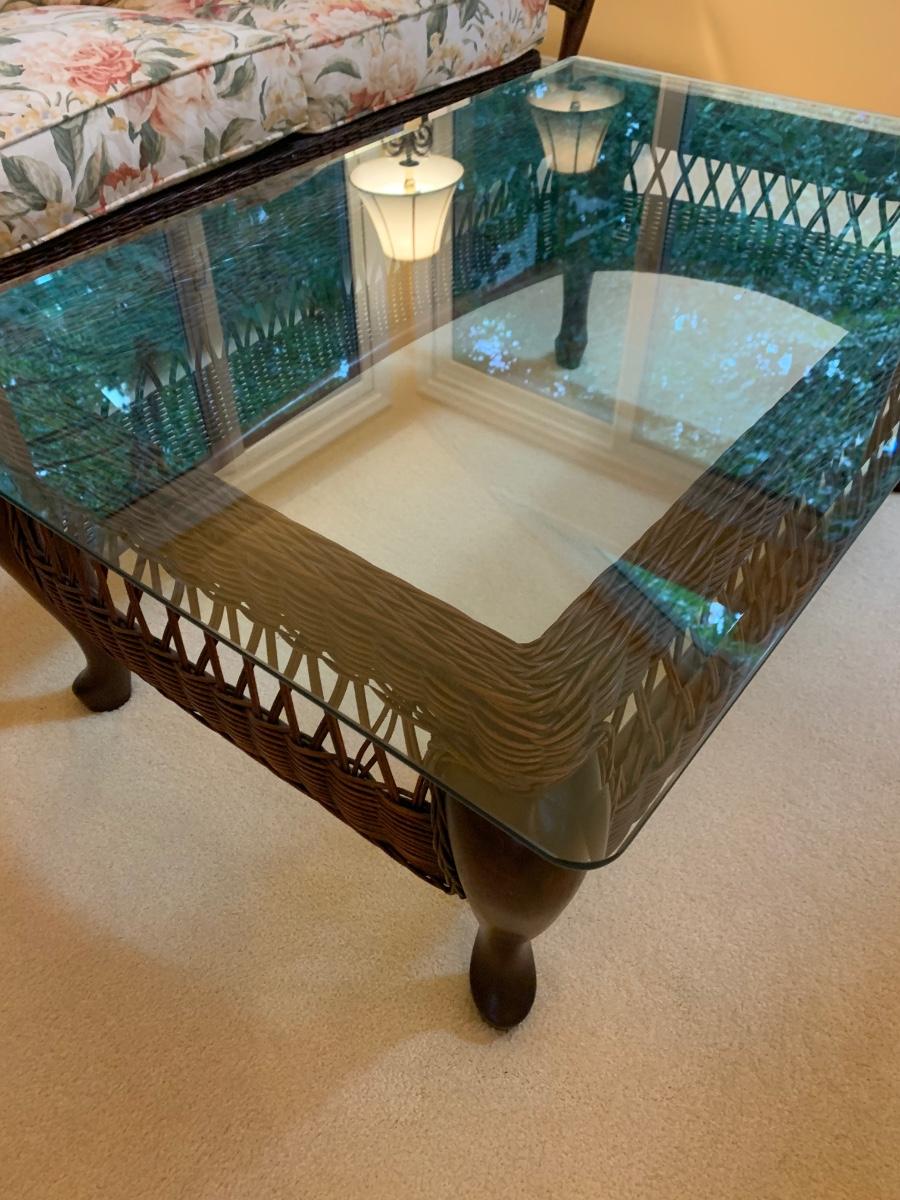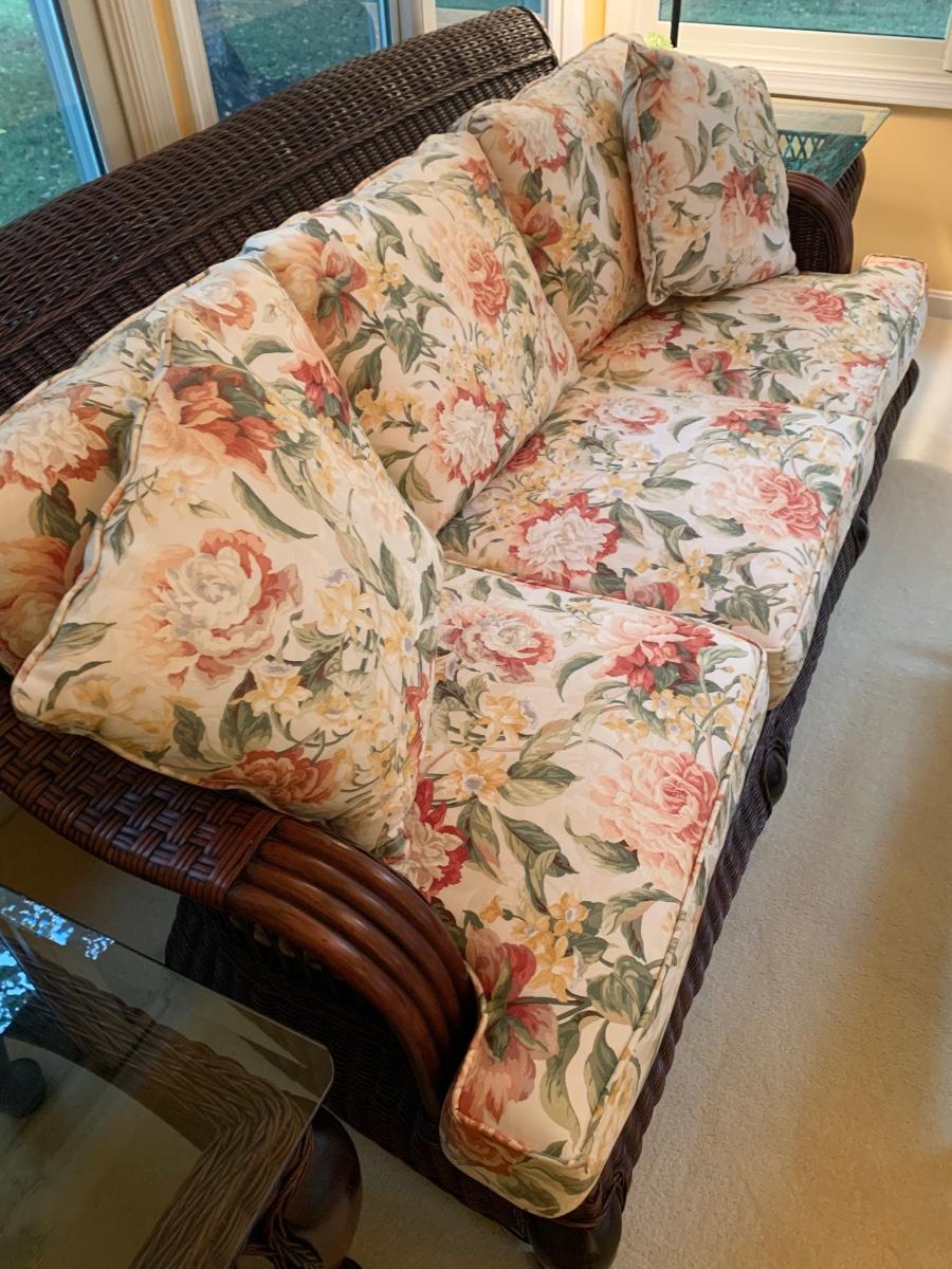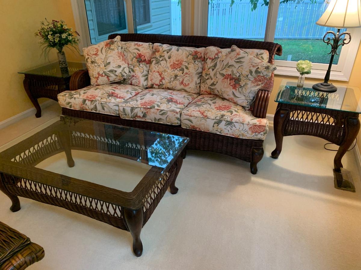 Braxton Culler Rattan Wicker Sunroom Set Sofa & Tables