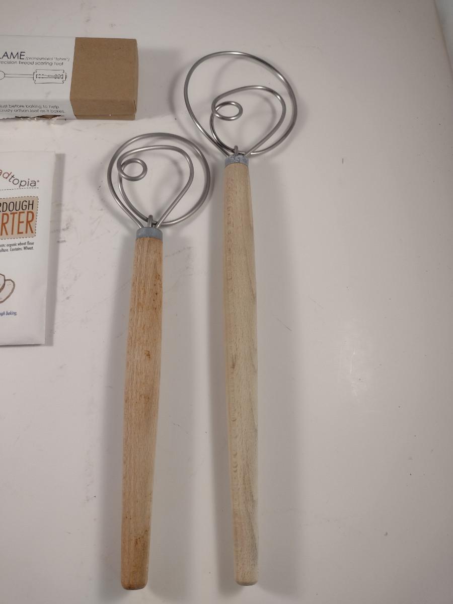 Bread Baking Utensils- Danish Dough Whisks, Lame, and Sourdough Starter