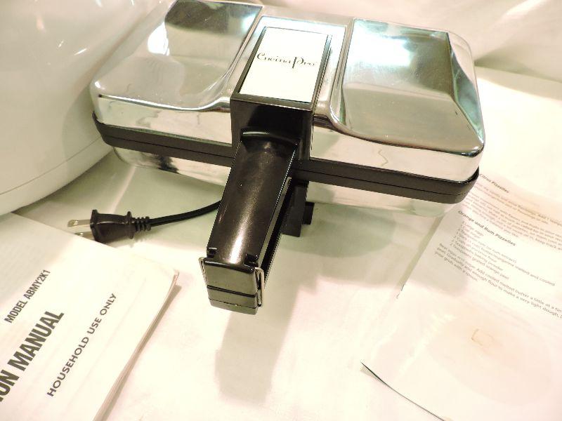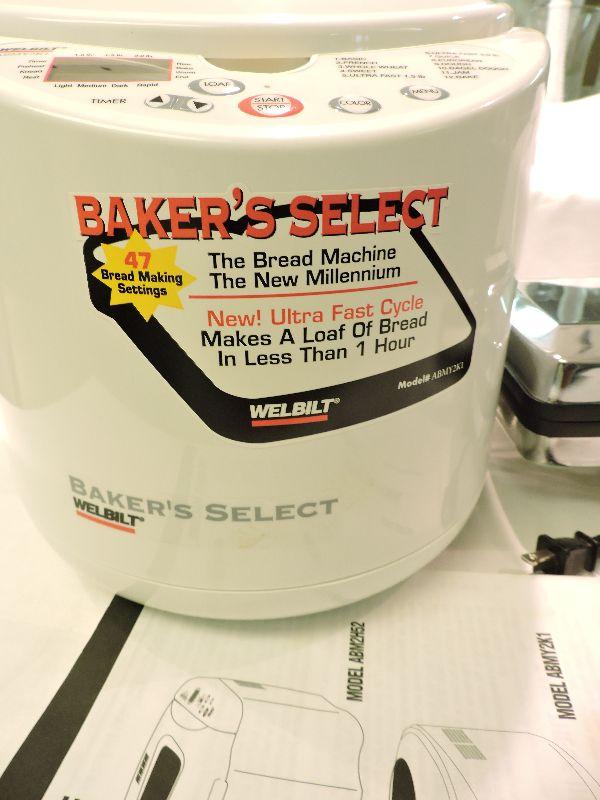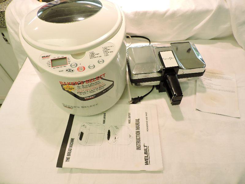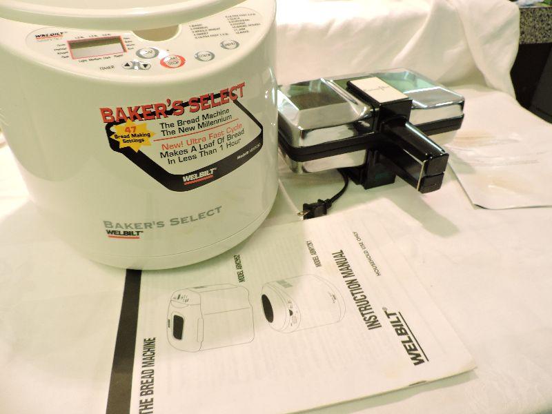 Welbilt bread maker, and a Cucina Pro pizzelle baker. Untested. Please read Terms and Conditions before placing a bid. Pick up is Friday, October 25th between 4 and 7, and Saturday, October 26th between 9 and 1. Props included in photos are not included in listing. All measurements are approximate. Comes from home with cats.