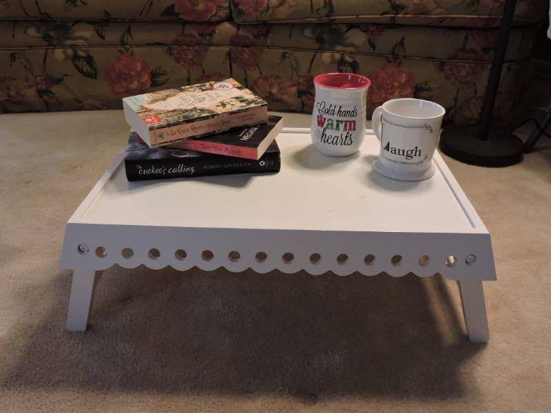 Have your coffee and read a book while lounging in bed with this wooden tray table. **Please read Terms and Conditions before placing a bid. Pick up is Wednesday, September 25 from 4pm to 7pm and Saturday, September 28 from 9am to 1pm in Williamstown, NJ. All sales are final. All sales are as is, where is. Please review all photos. Any props included in photos are not included in listing. All measurements are approximate.