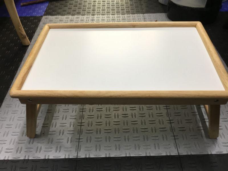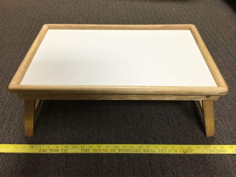 Breakfast in bed serving tray table. Many uses for this lap table. Collapsing legs. Previously owned condition.