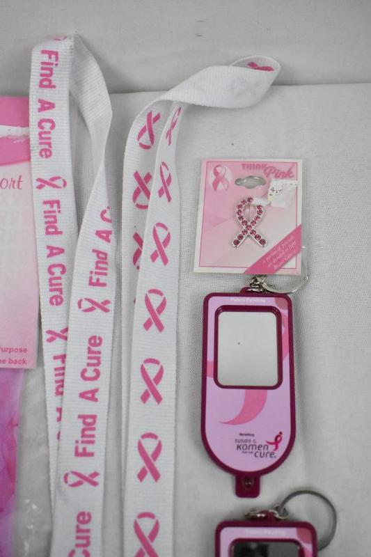 Breast Cancer Awareness Scarf, Set of 4, 2 Pins, 2 Lanyards, 2 Mirror Keychains - New