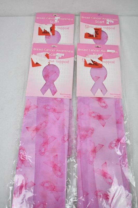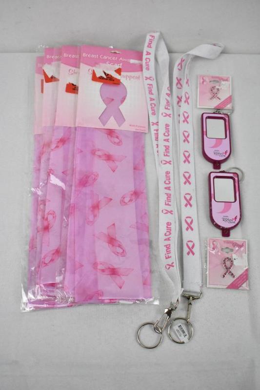 Breast Cancer Awareness Scarf x4, 2 Pins, 2 Lanyards, 2 Mirror Keychains - New