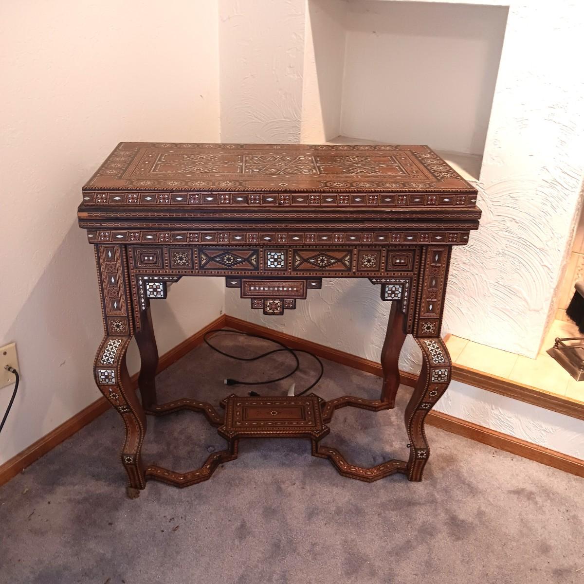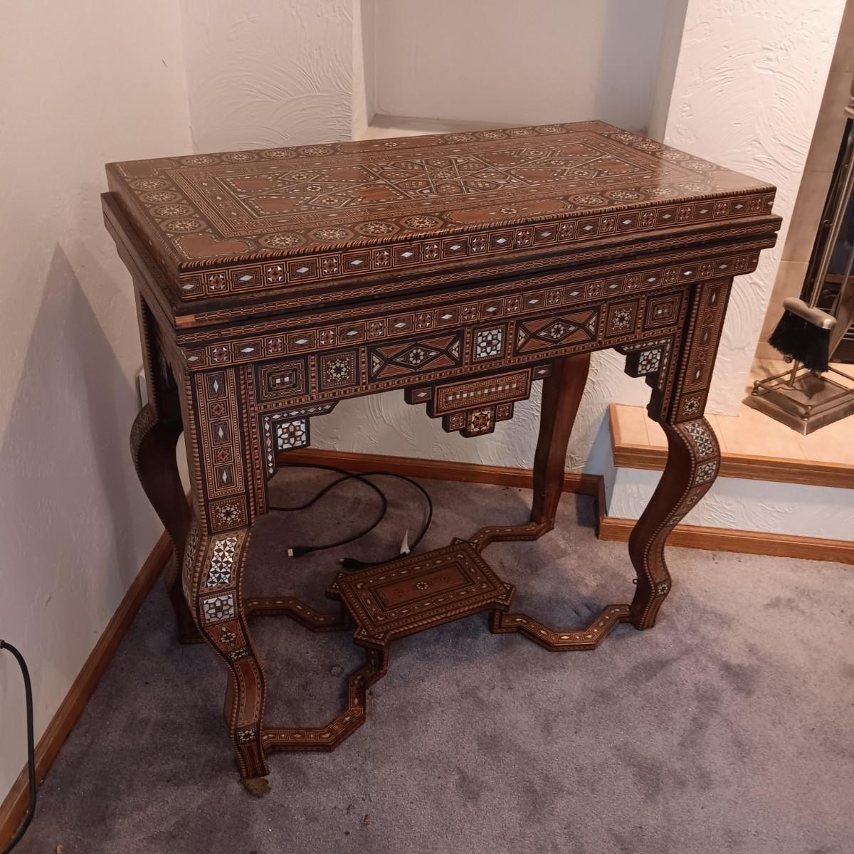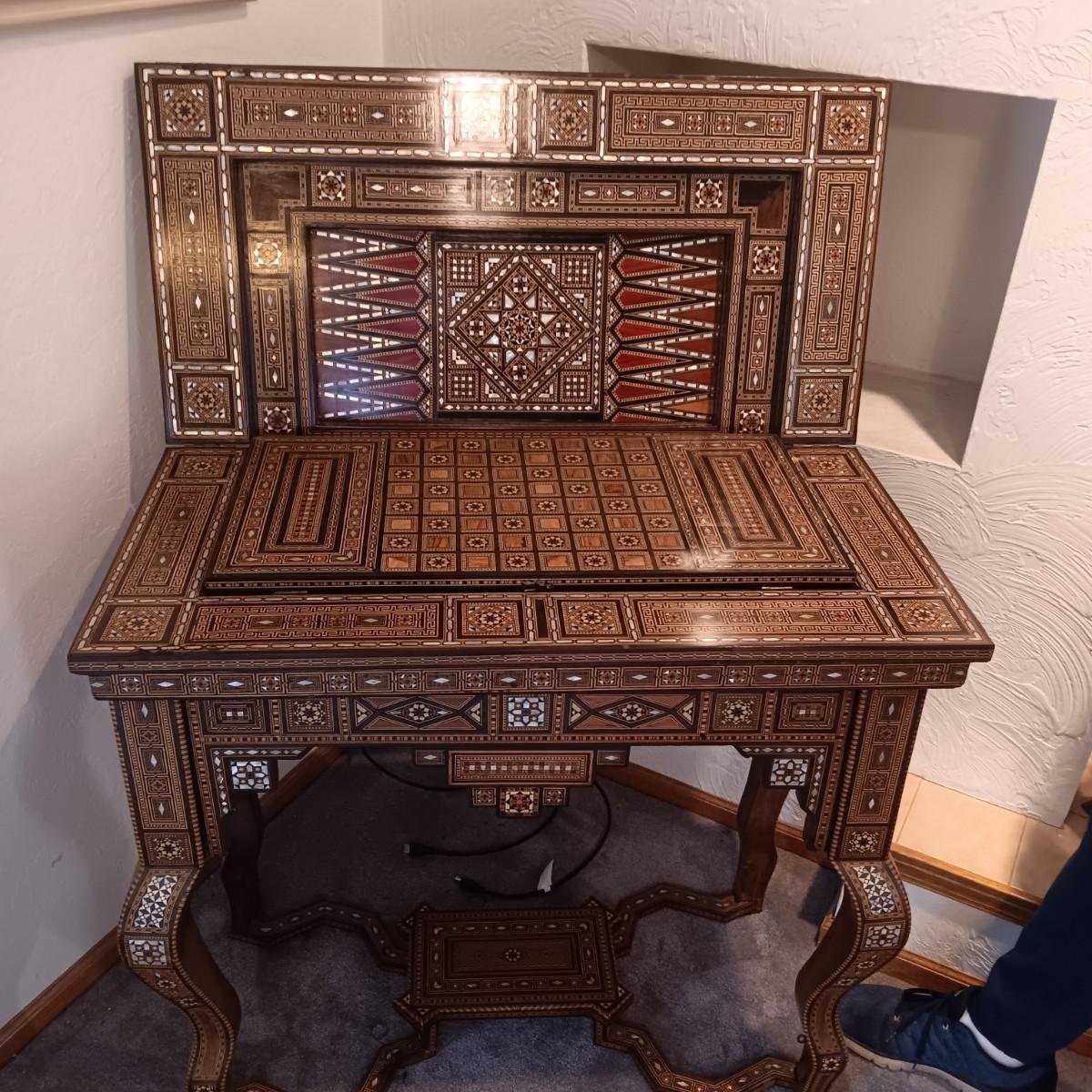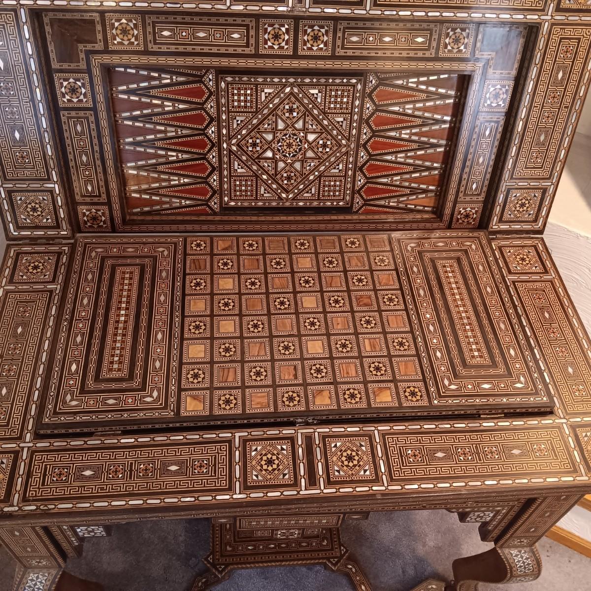 BREATHTAKING SYRIAN DETAILED INLAID MOTHER OF PEARL FOLD OUT GAME TABLE