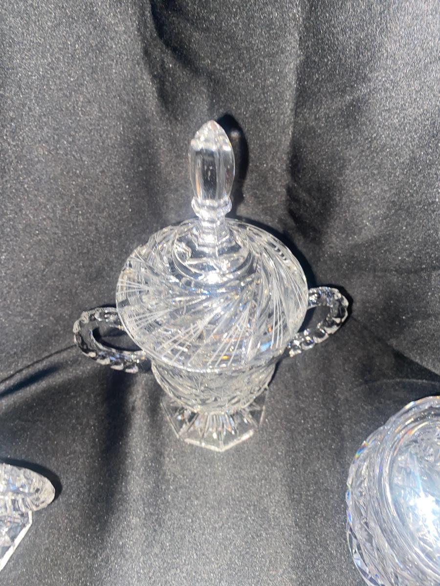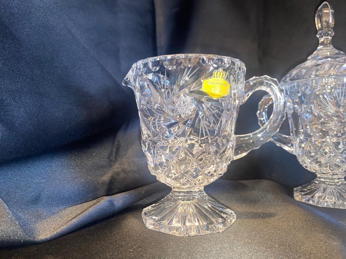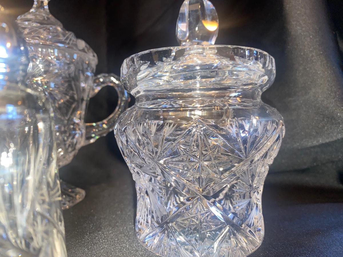 BREATHTAKING VTG LEAD CRYSTAL SALT AND PEPPER, SHAKERS, CREAMER AND SUGAR BOWL