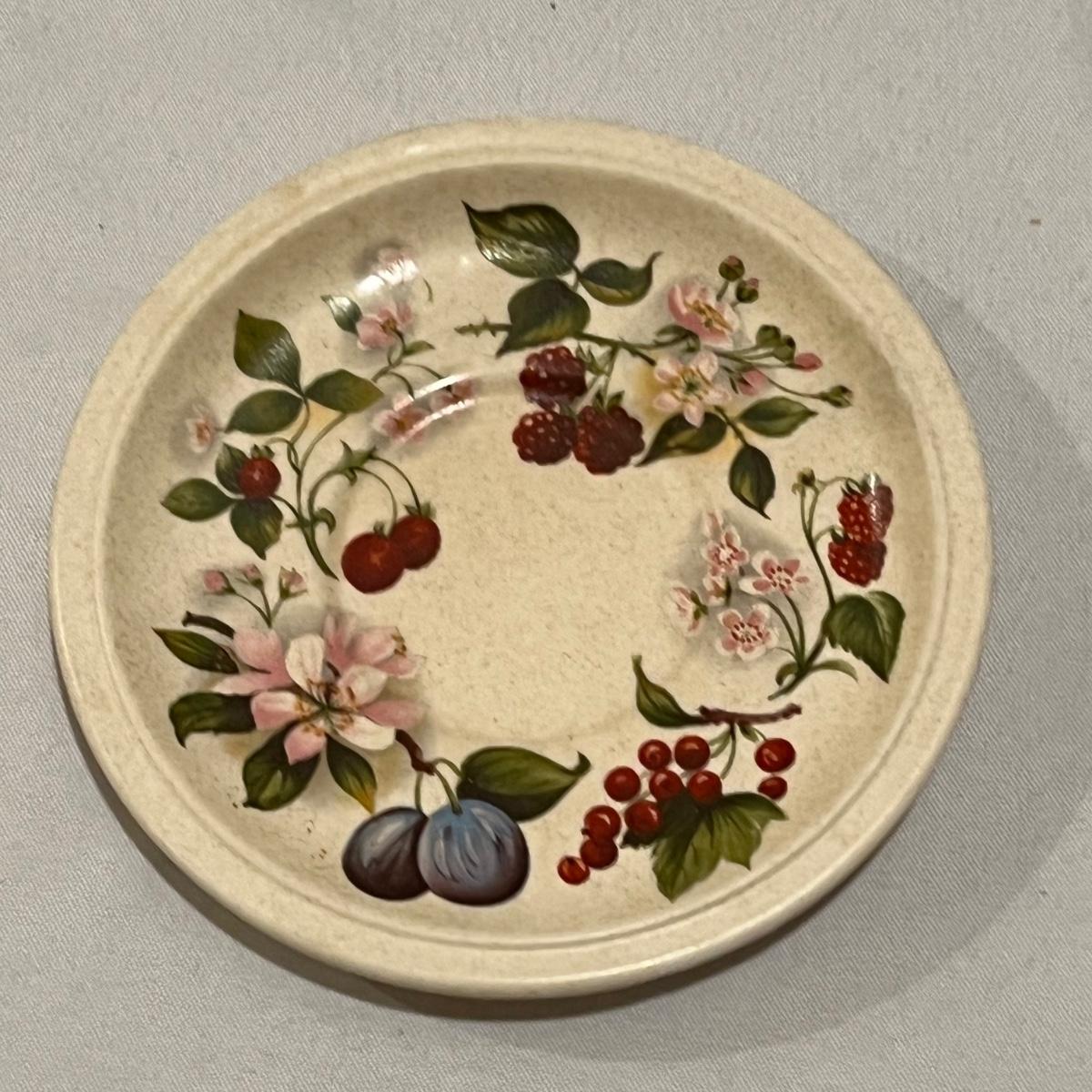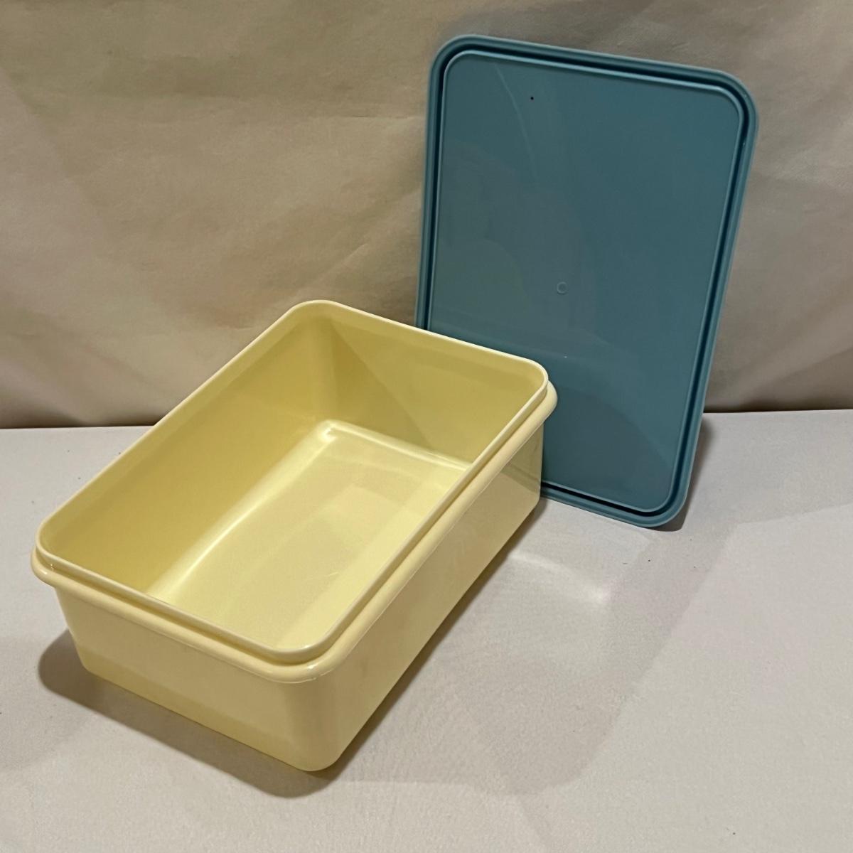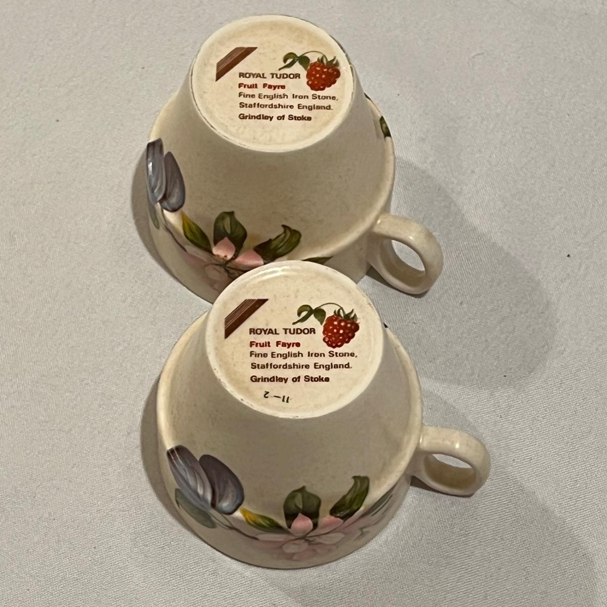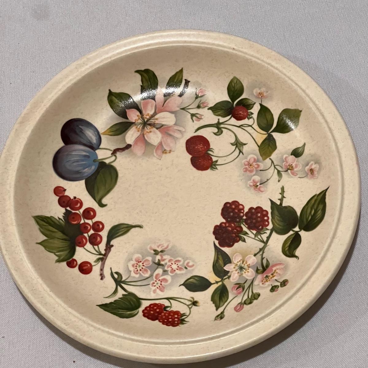 Lovely 15” x 15” x 6”H picnic basket for two! Two coffee cups and two 6” saucers. Also two 8” plates, three nesting drinking cups and two thermoses This set includes a salt and pepper shaker, two spoons, forks and knives as well as a Tupperware-like storage container for the main meal.