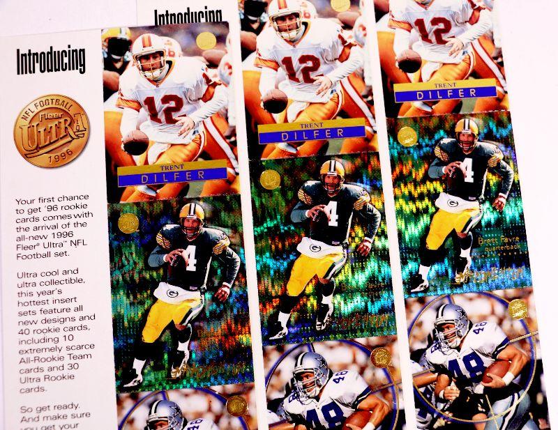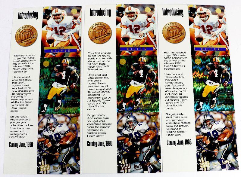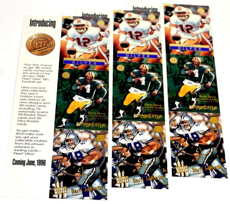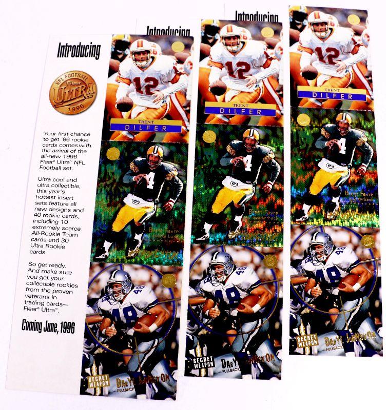 BRETT FAVRE Trent Dilfer Daryl Johnston UNCUT PROMO FOOTBALL CARDS 1996 FLEER SKYBOX