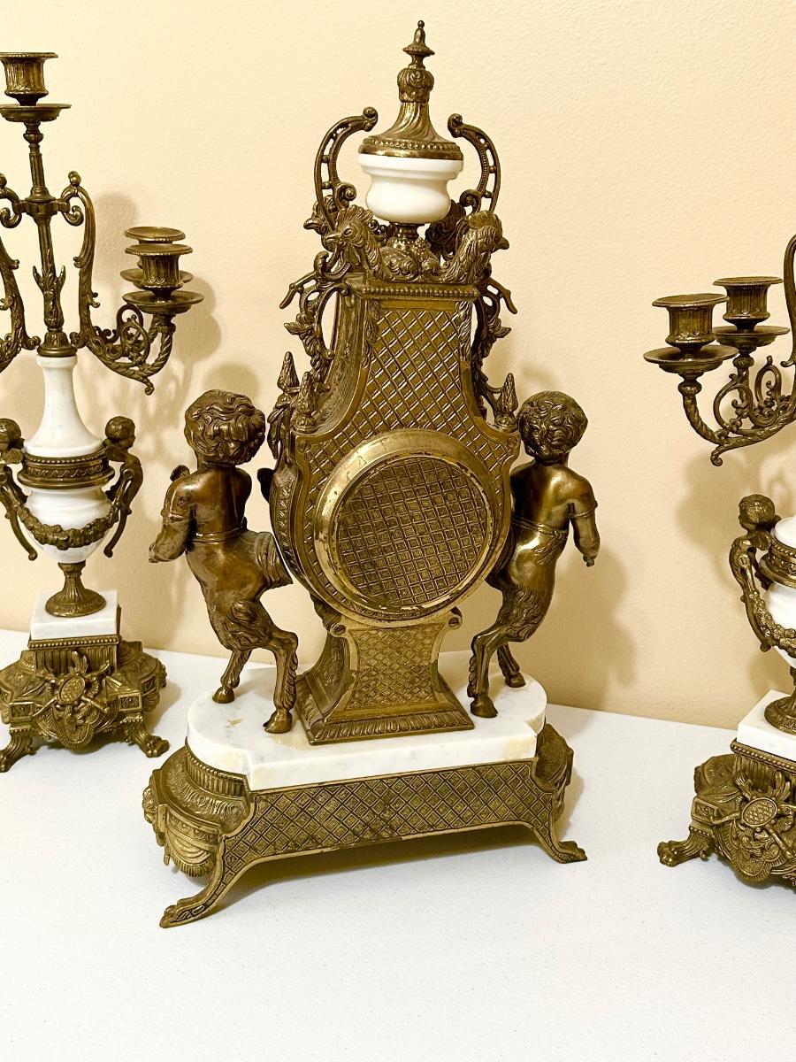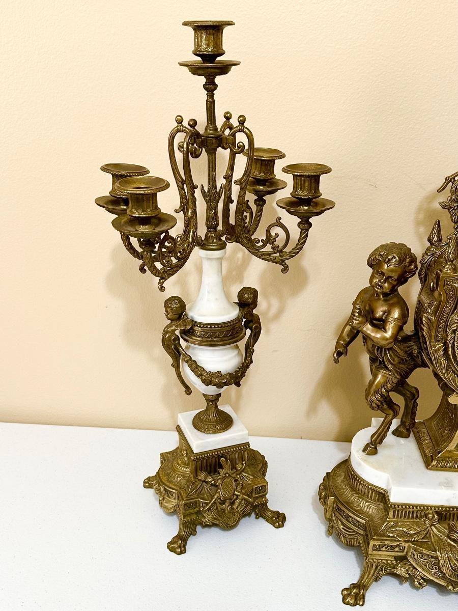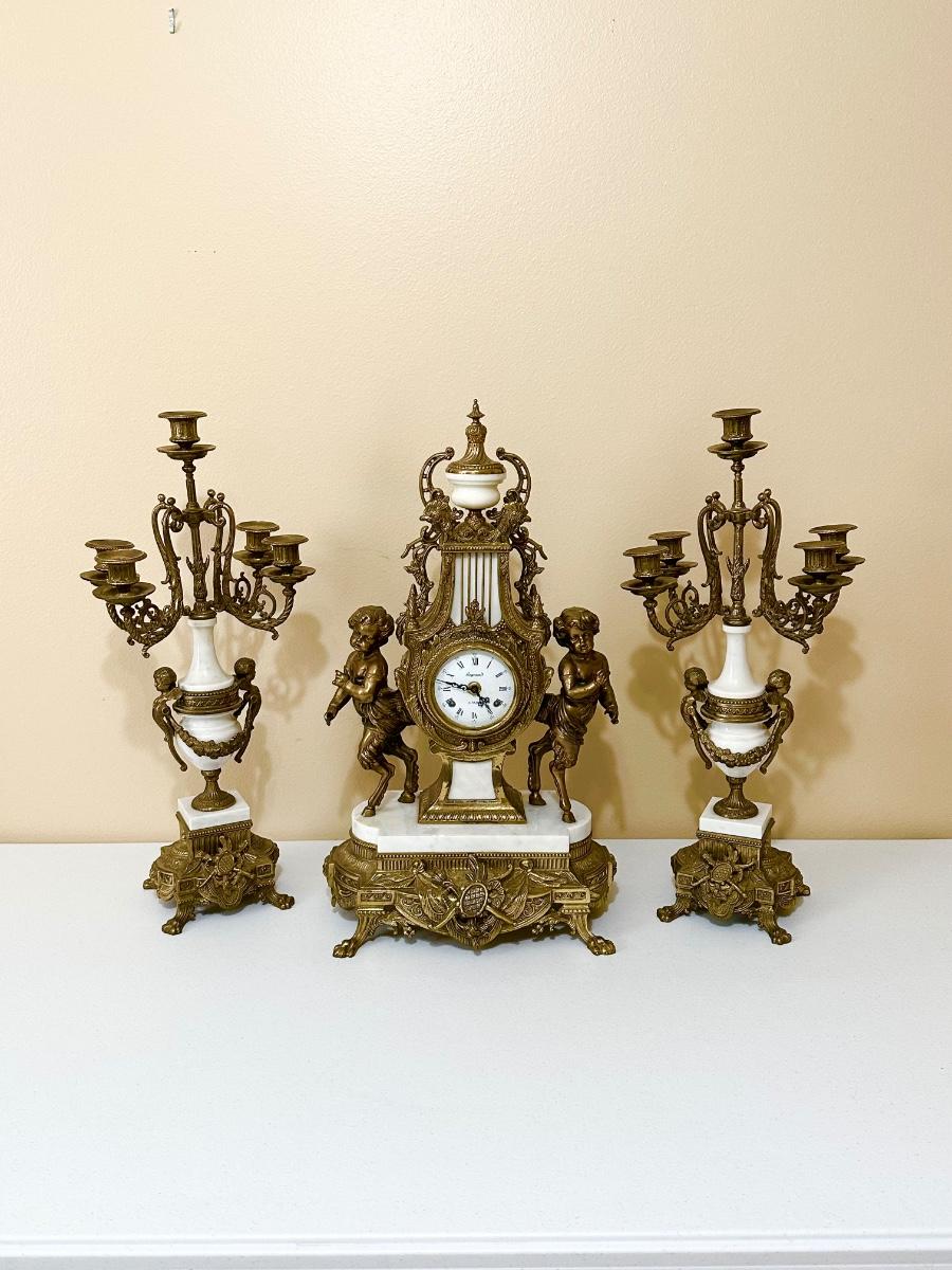 BREVETTATO ~ 3 Pc Italian Imperial Working Clock & Matching Candelabras