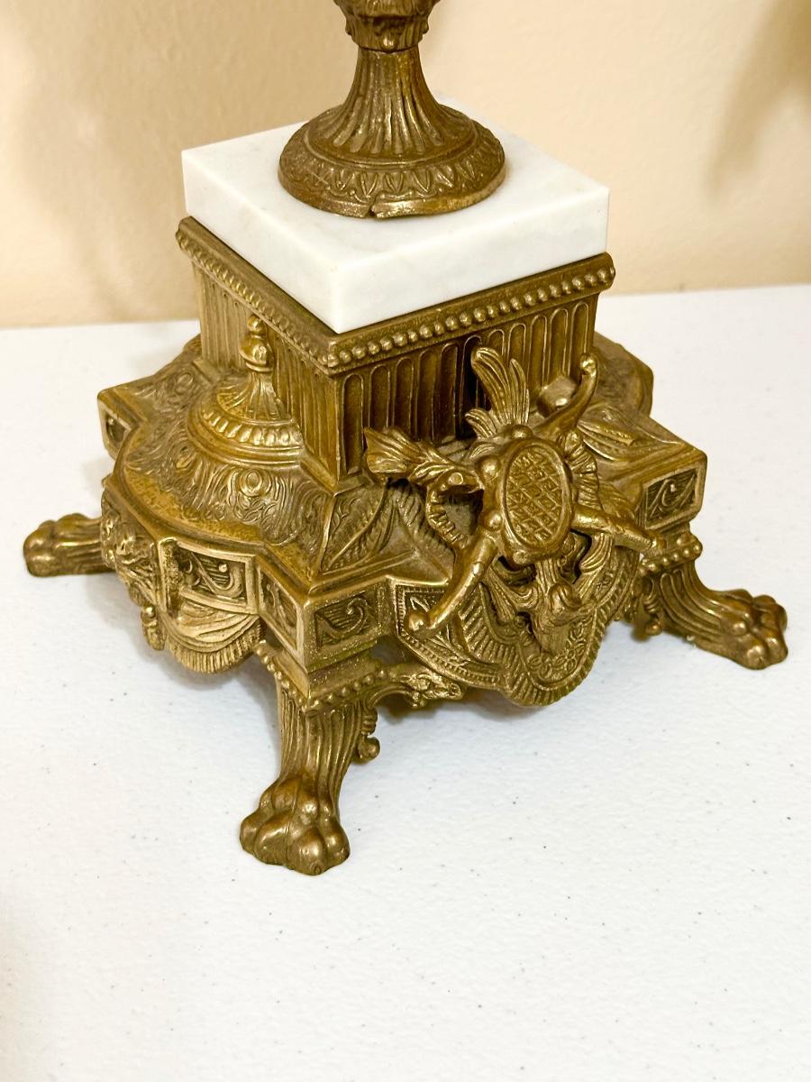 Made of Bronze and Marble ~ Very Heavy ~ This beauty will not disappoint ~center piece measures 24.5” H x 14” W x 8” D ~ It has a wind-up key and works perfectly and chimes beautifully.