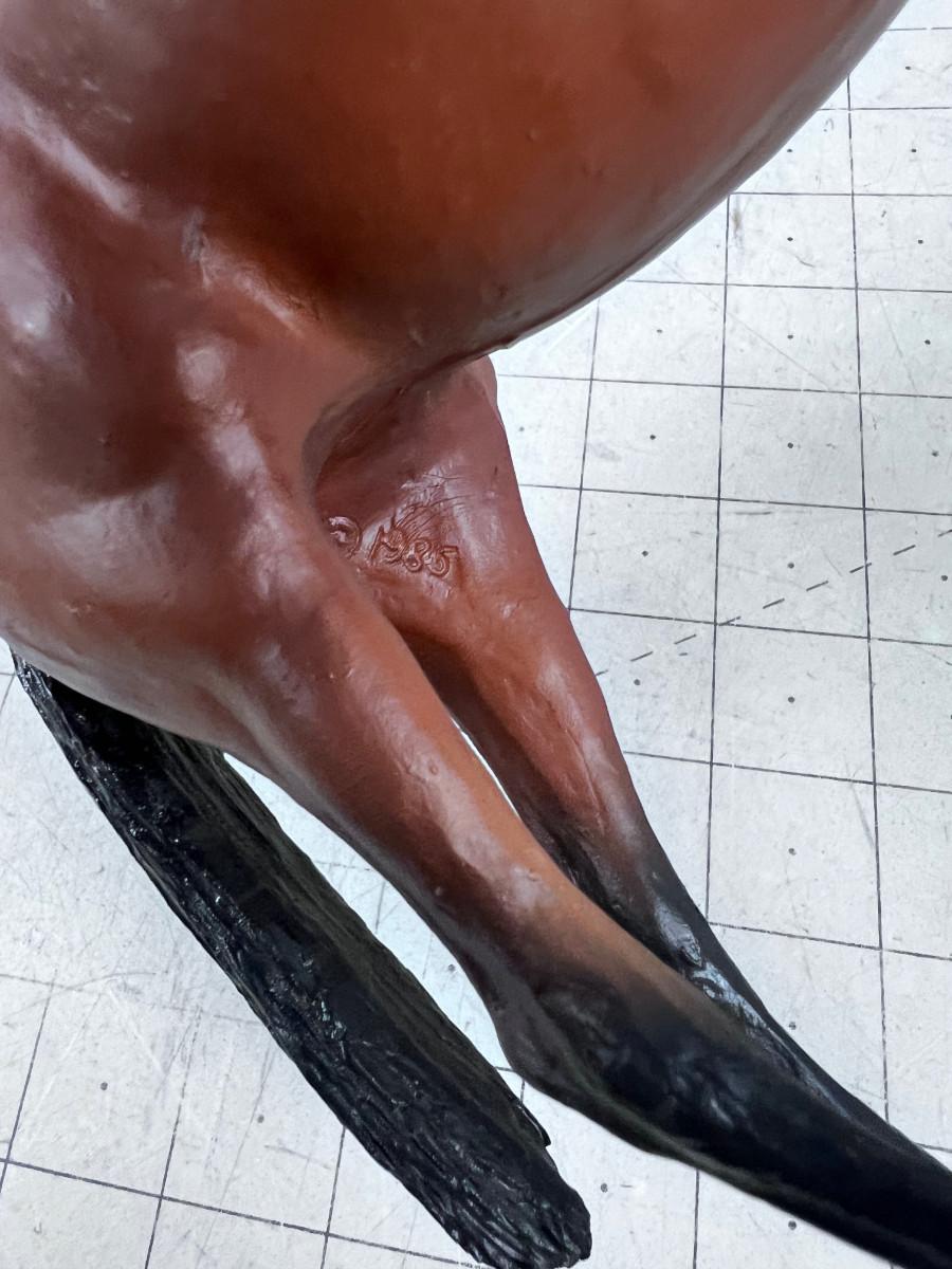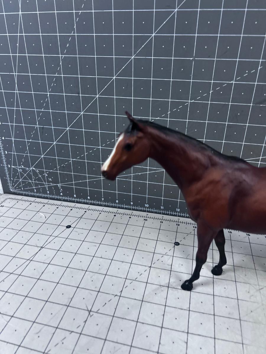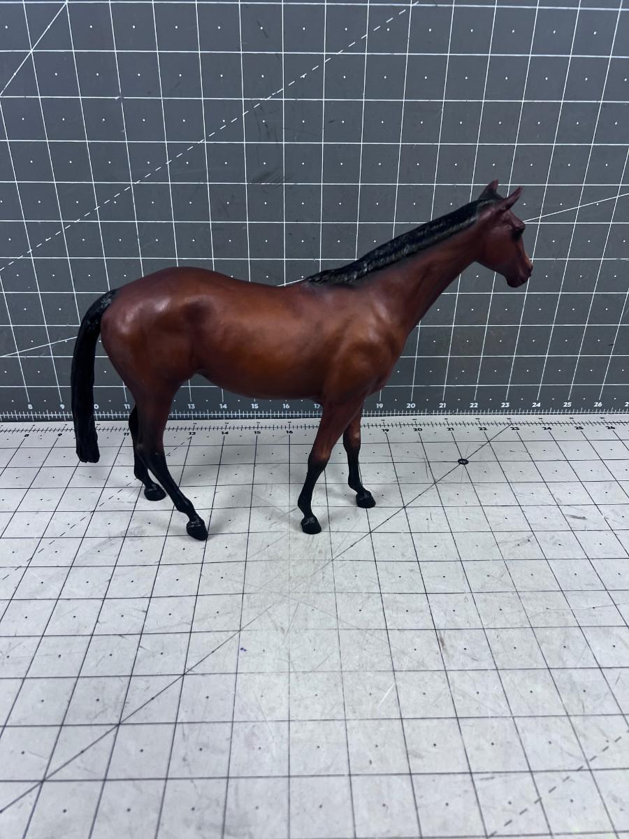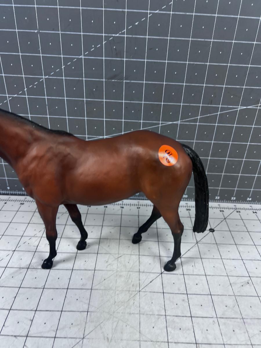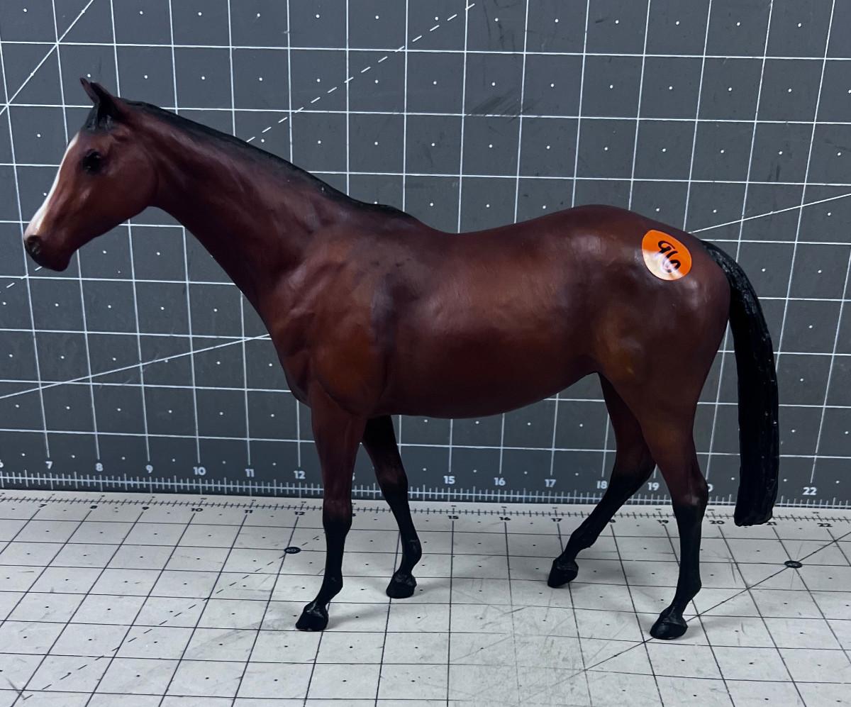 Here is a Breyer model of Touch of Class (1973-2001)..an Olympic gold medal winning thoroughbred mare..Medium brown bay with white blaze..black points..The mold is marked 'Copyright 1985' the way all Touch of Class Artist Series horse were marked I believe...Sculpted by Chris Hess..#420...Traditional size..8" high..10.5" long...No damage..No box.