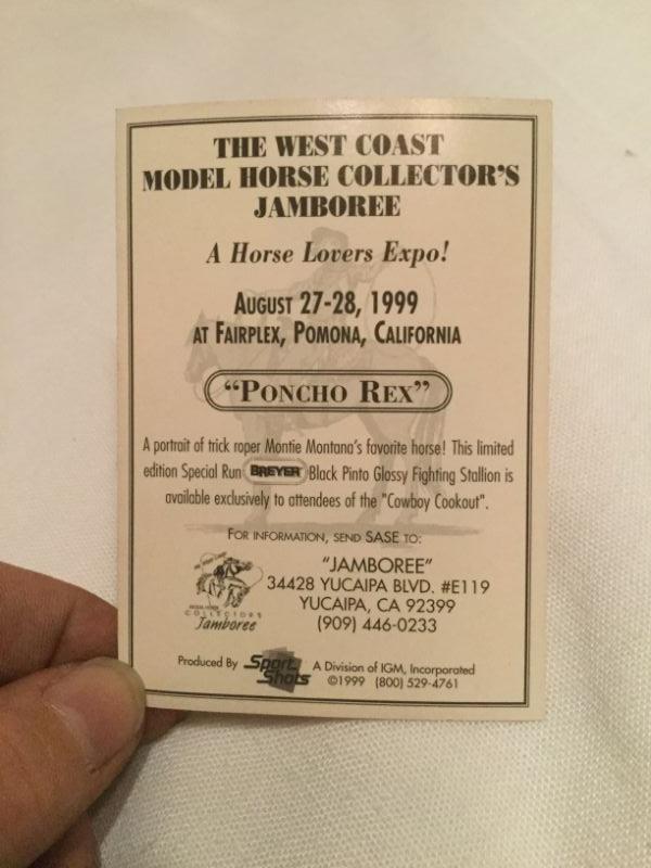 Breyer PONCHO REX 1999 West Coast Jamboree SR Fighting Stallion Hang Tag