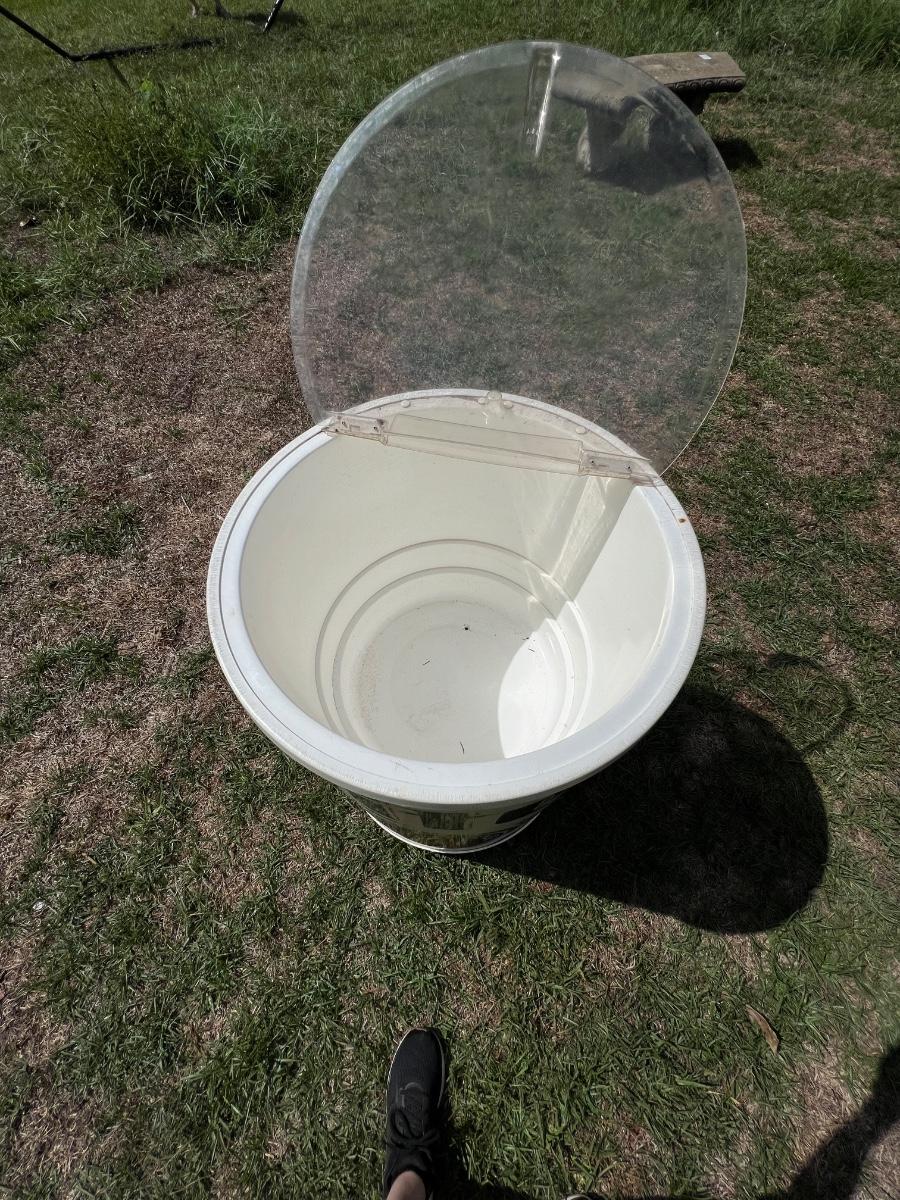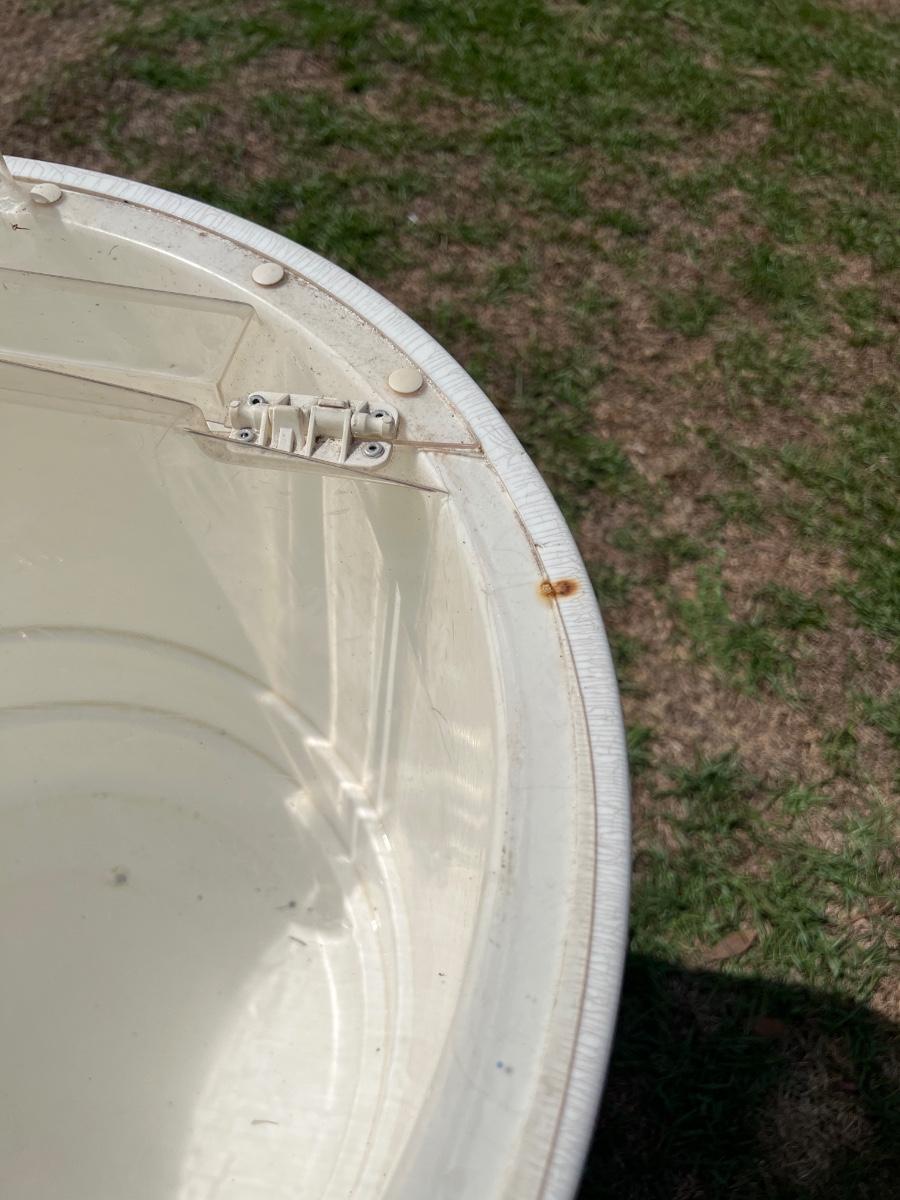 Rolls easy ~ No cracks inside tub ~ Needs additional cleaning ~ See photos for condition ~ 37” H x 23” Round ~ Inside tub = 18” H x 20” Round
