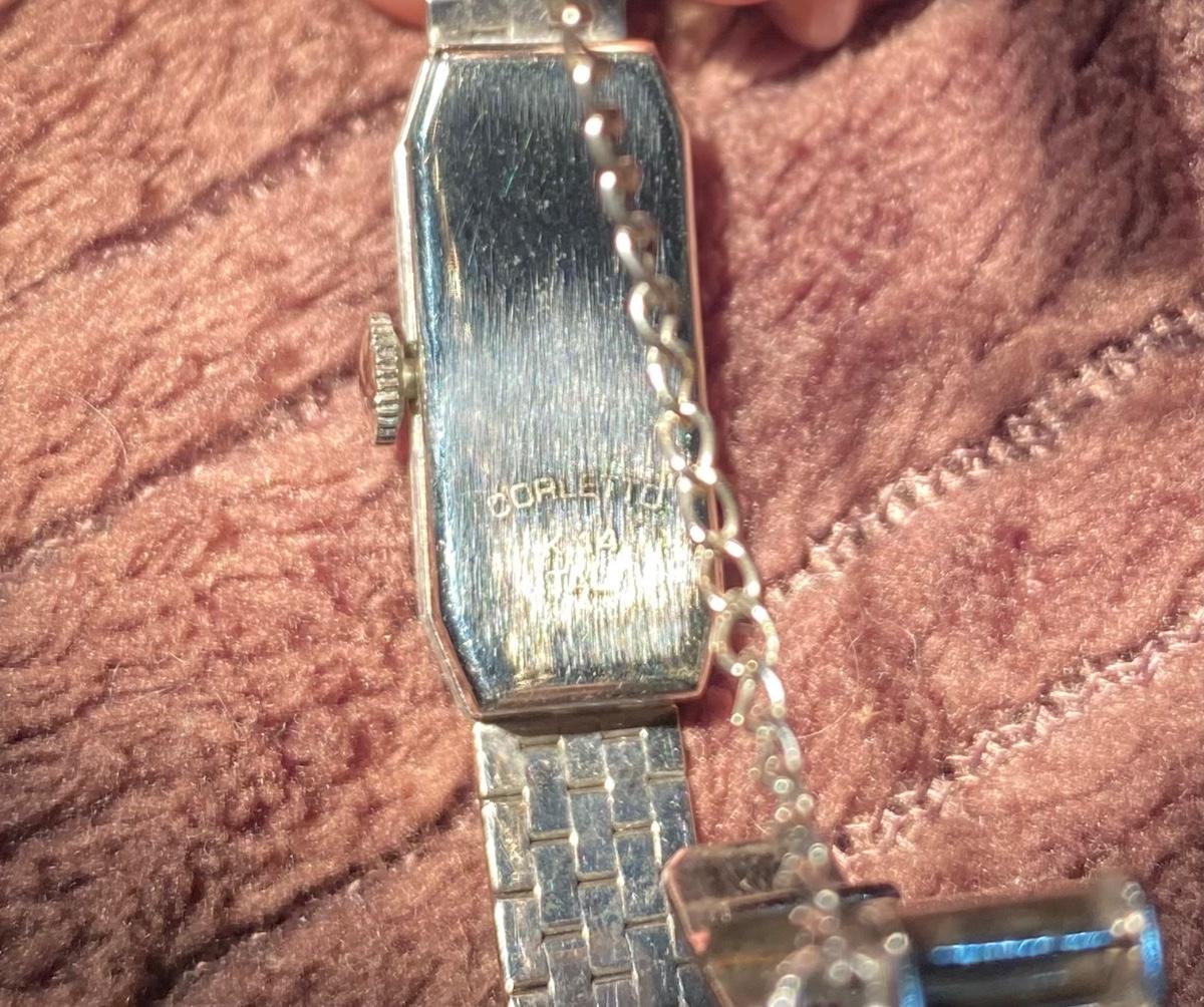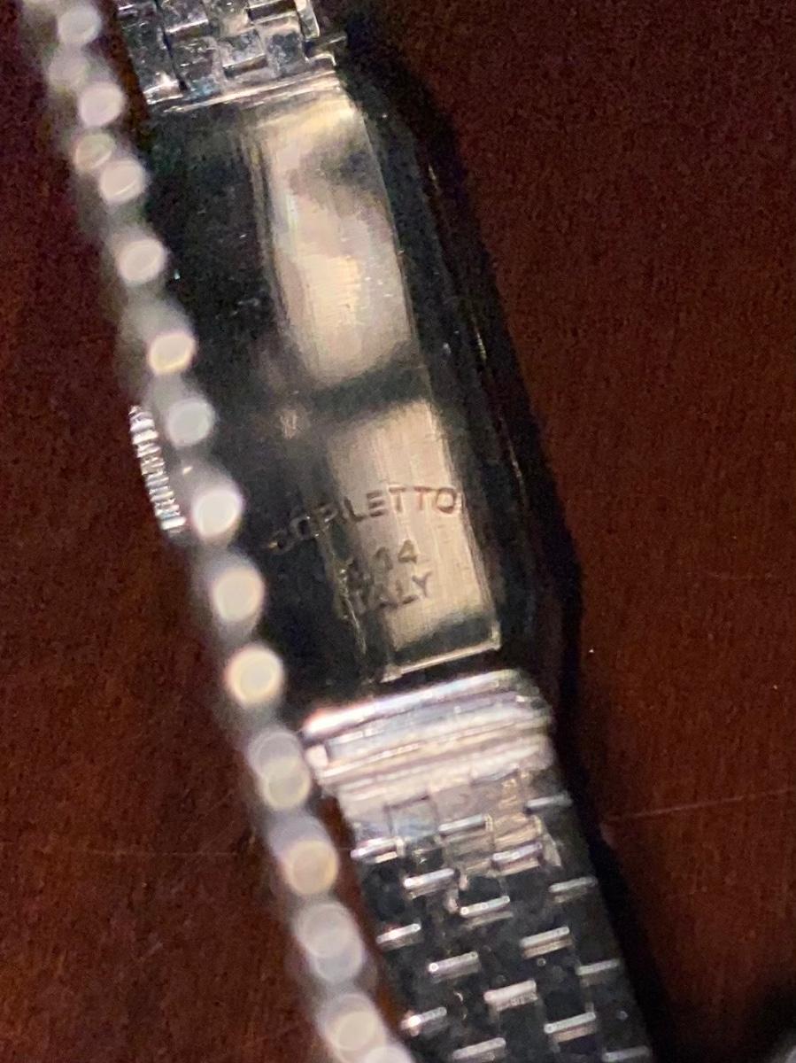 Beautiful Brichot 17 Jewel 14 KT white gold ladies vintage watch with 8 diamonds. Corletto 14KT white gold Italy. Approx size 7. Needs some repair. Starting bid reflects scrap value