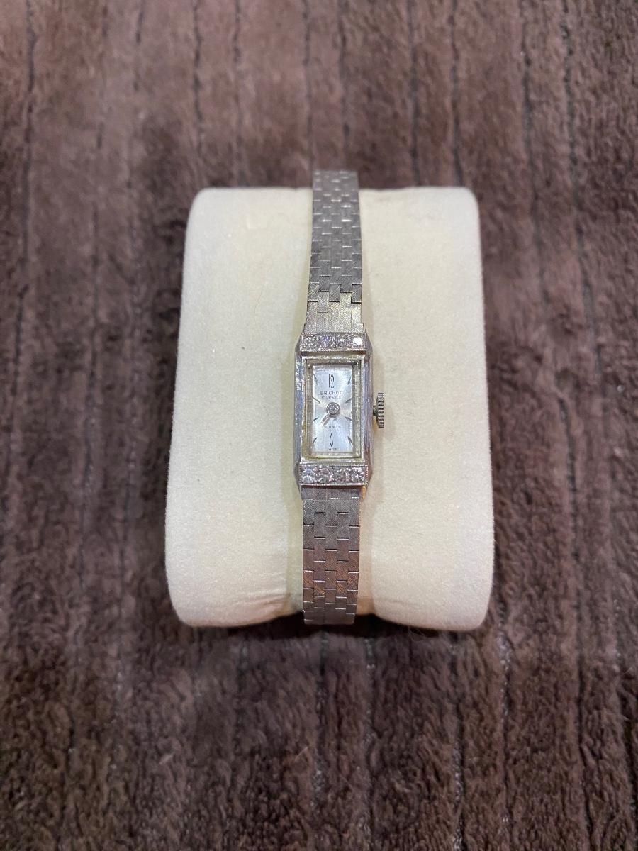 Beautiful Brichot 17 Jewel 14 KT white gold ladies vintage watch with 8 diamonds