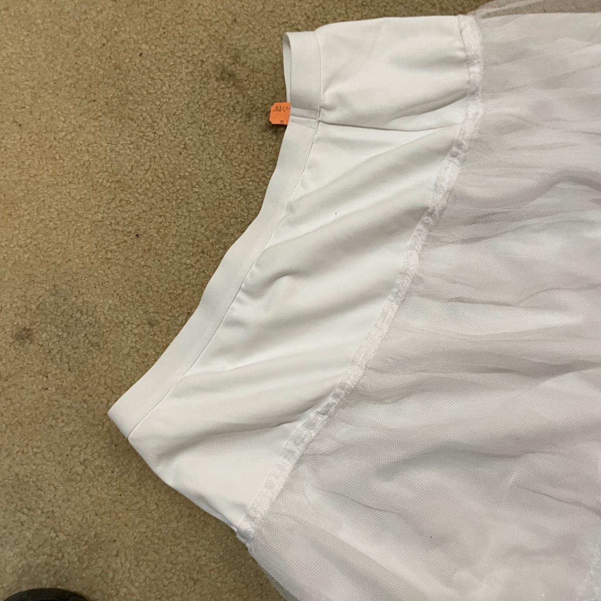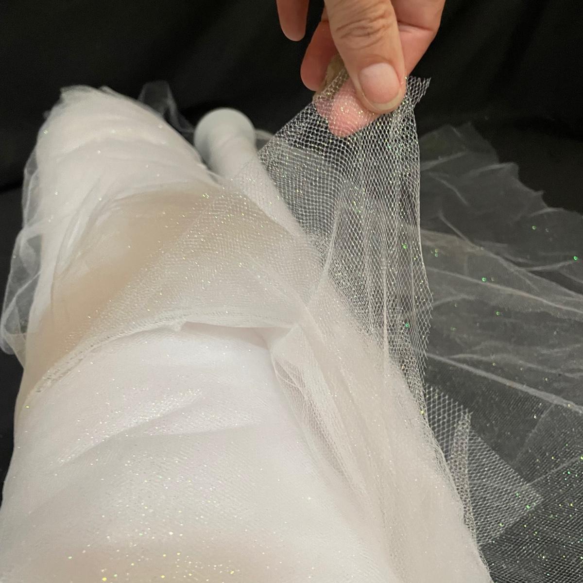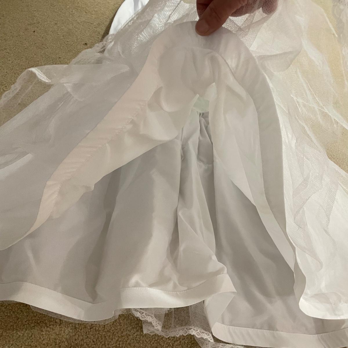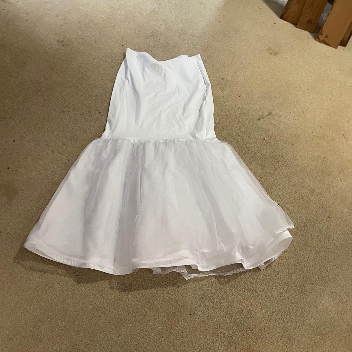 Fullest of the 2 crinoline skirts measures approximately 43” long (including the elasticated waist section) x 73” wide.
