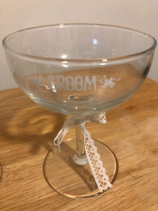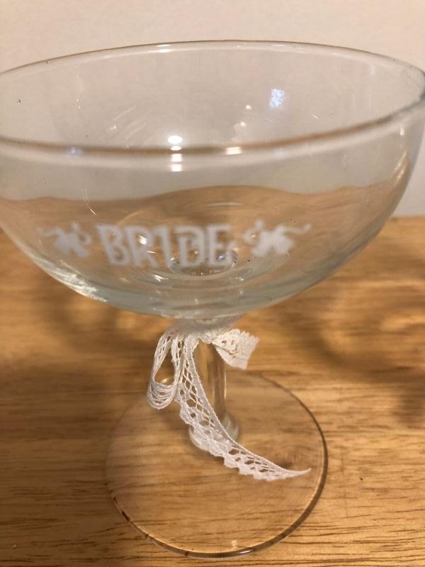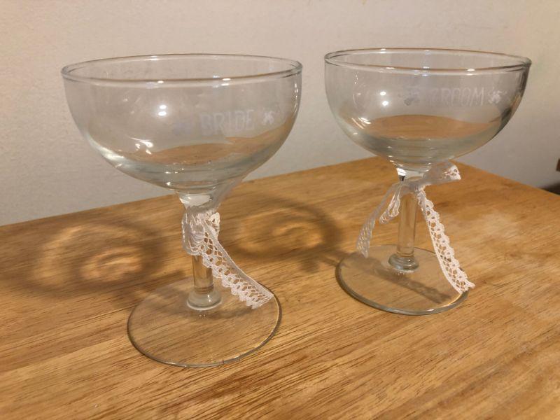Bride and Groom Toasting Glasses **Please read Terms and Conditions before placing a bid. Pick up is Thursday, August 15, 2019 from 4pm to 7pm or Sunday, August 18 from 11am-2pm in Mullica Hill. All sales are final. All sales are as is, where is. Please review all photos. Any props included in photos are not included in listing. All measurements are approximate.