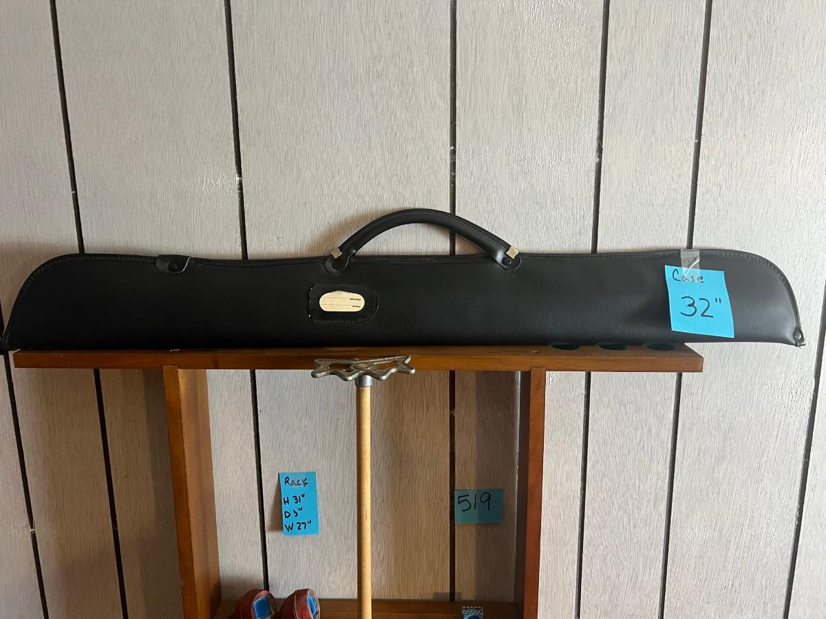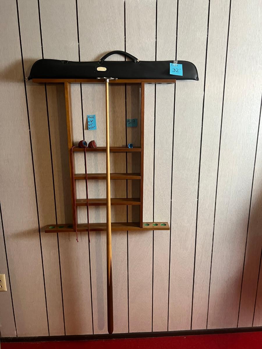 Bridge 56 3/4" Pool Cue Rack 31" x 3" x 27" 3 chalks, 1 pool stick case 32" long