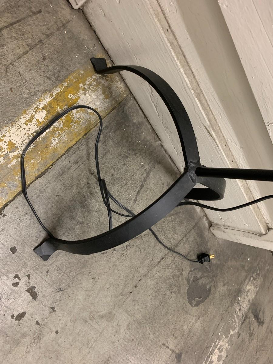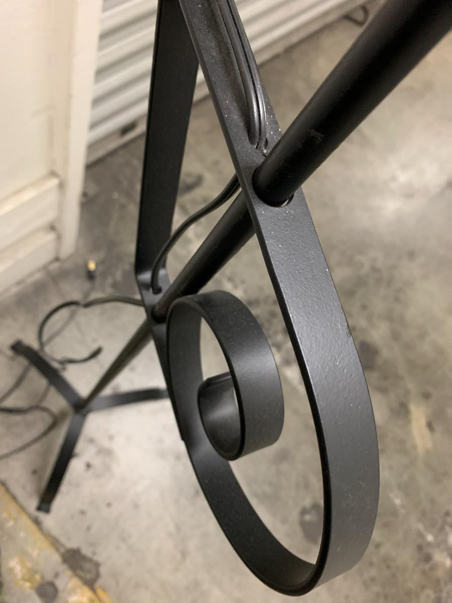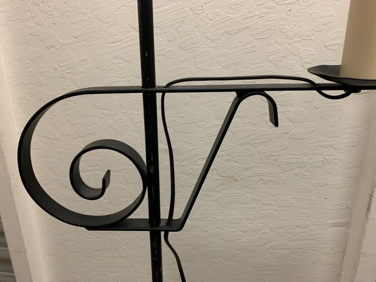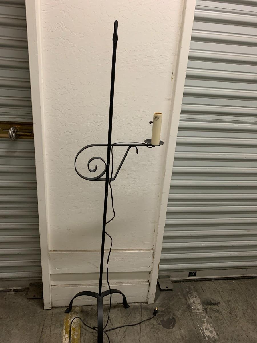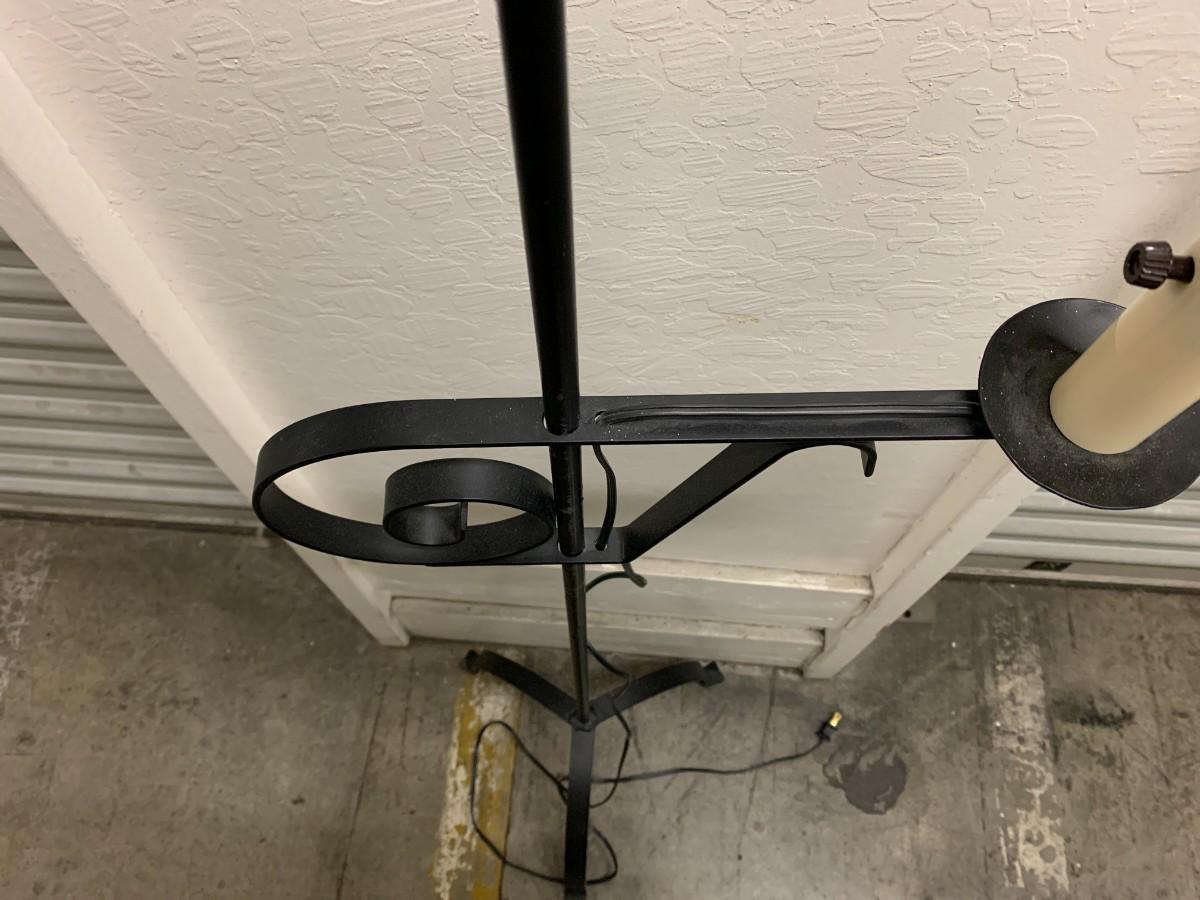 Wrought iron vintage floor lamp with woven shade. Not tested.
