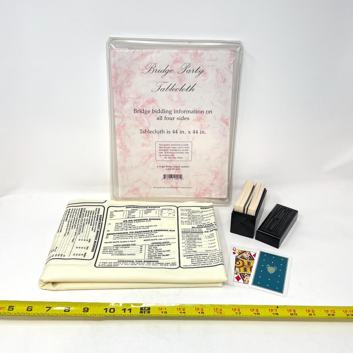 BRIDGE PARTY TABLECLOTH & 2 SETS OF PLAYING CARDS
