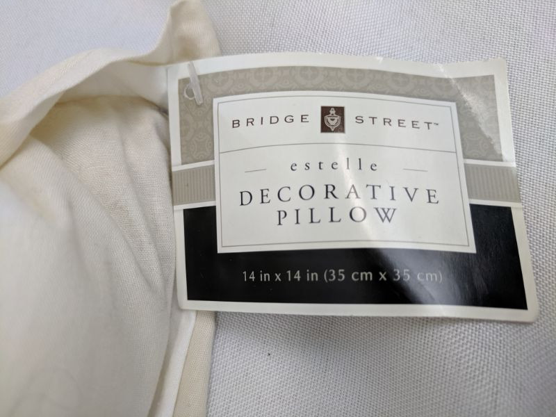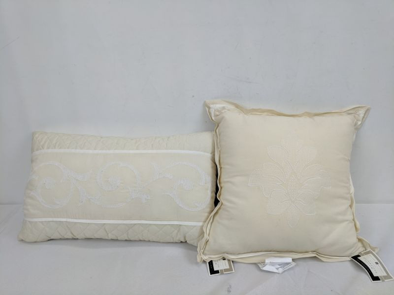 Bridge Street Decorative Pillows, Set of 2, Cream, 12" x 20" & 14" x 14" - New