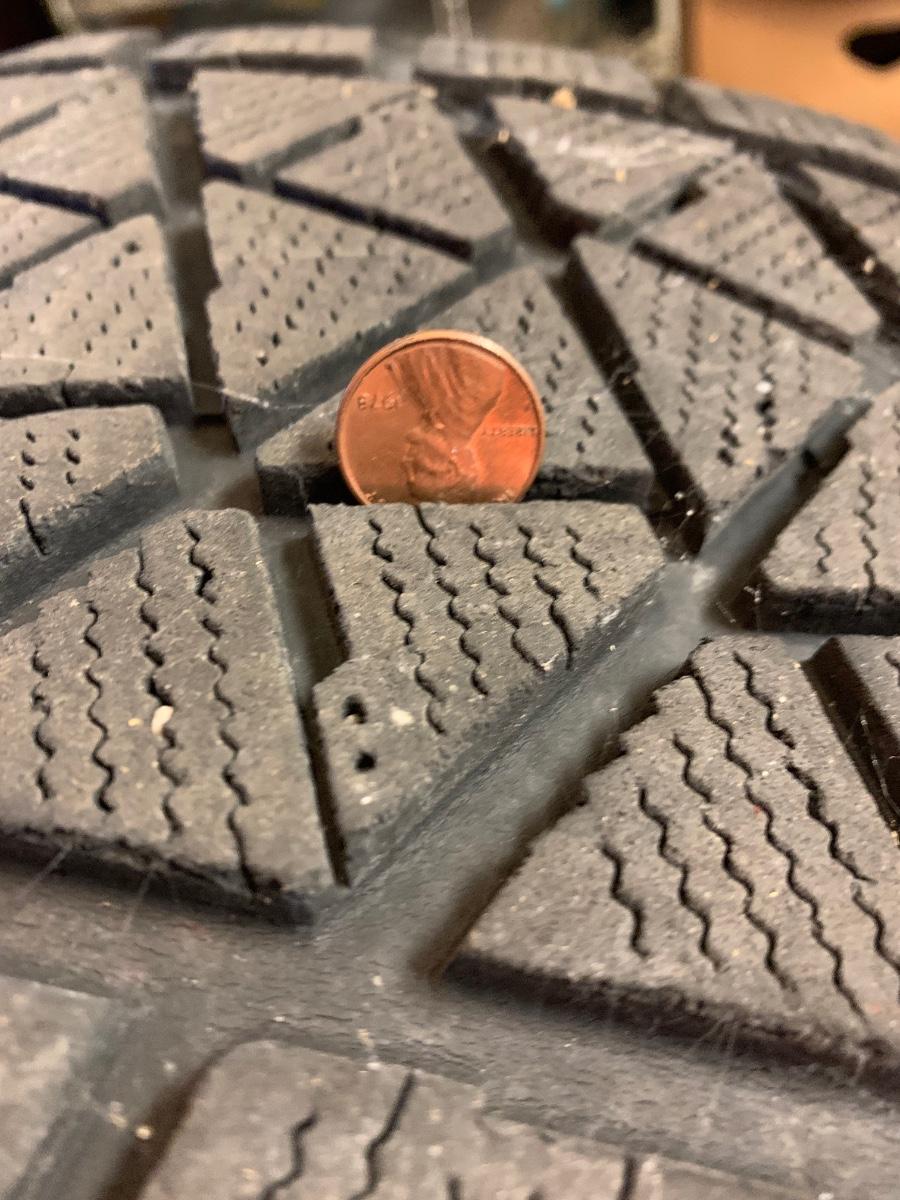 See all photos - looks like plenty of life left in the tread (passed the Penny test)