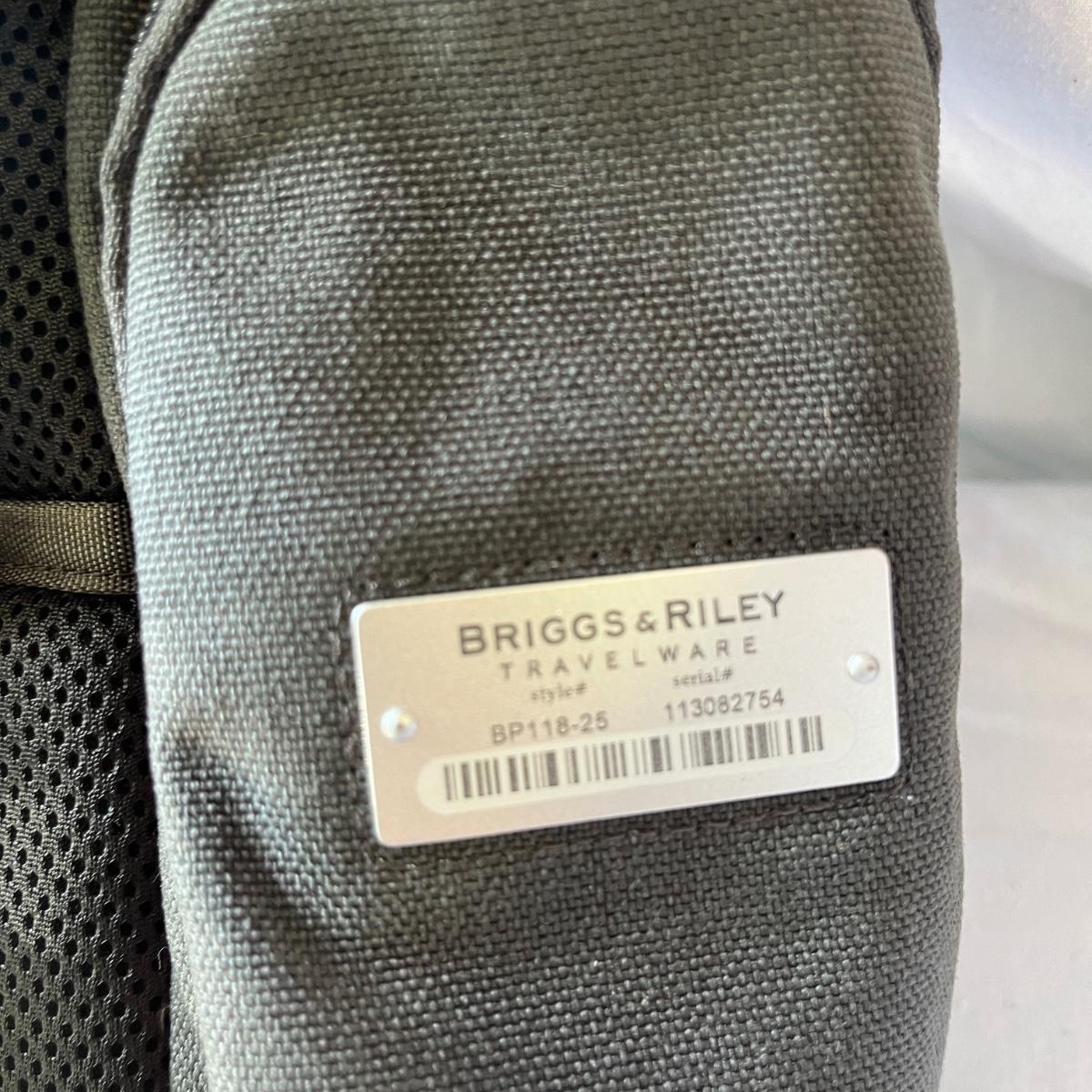 Lot includes a Briggs & Riley Backpack with padded straps. Backpack measures 16” x 7” x 16” H.