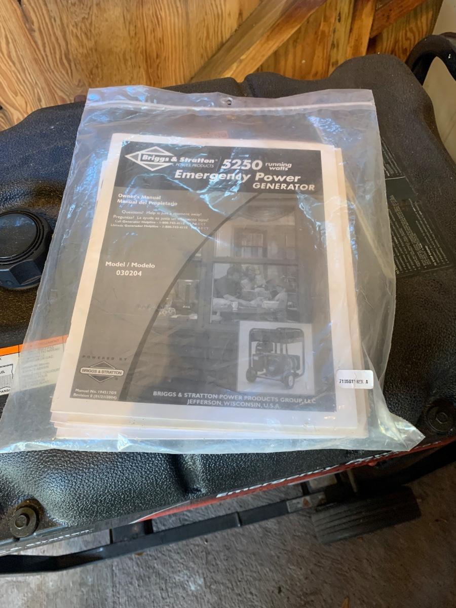 Briggs & Stratton generator 5250 running watt -good condition, runs