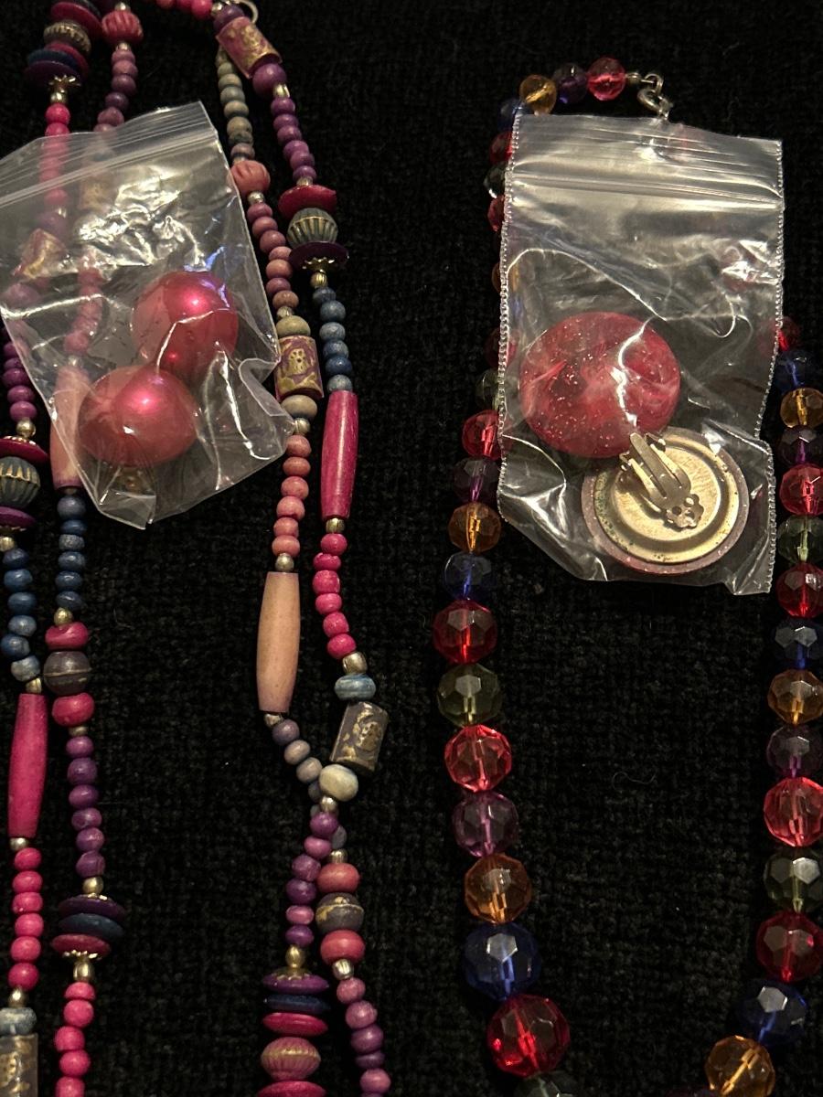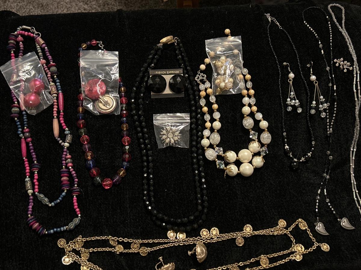 16 bright yet sophisticated pieces. The last two on the end are open neck necklaces so they do not have a clasp.