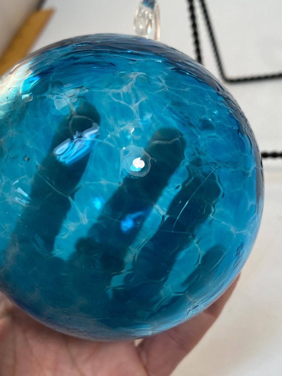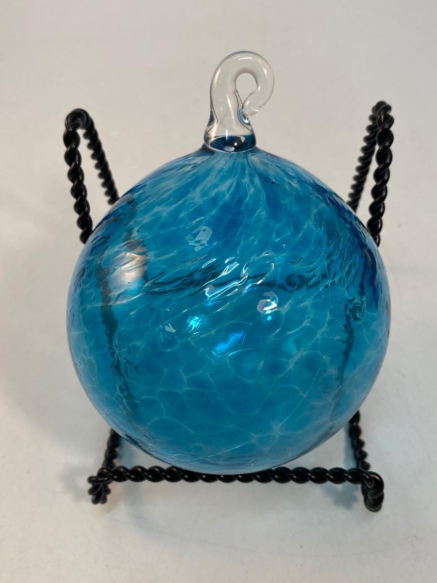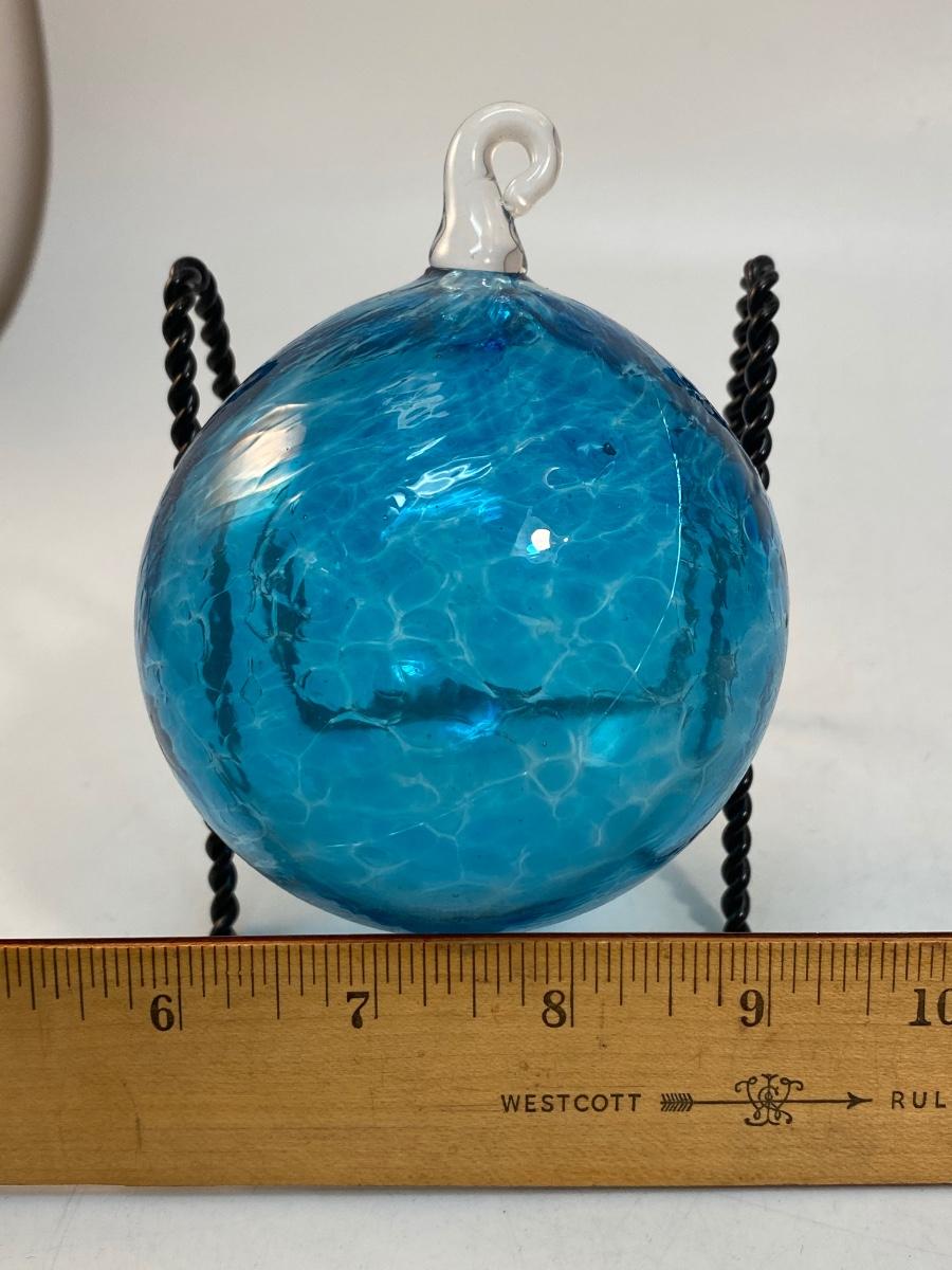 Bright Blue Hand Made Blown Glass Hanging Ornament Orb Suncatcher