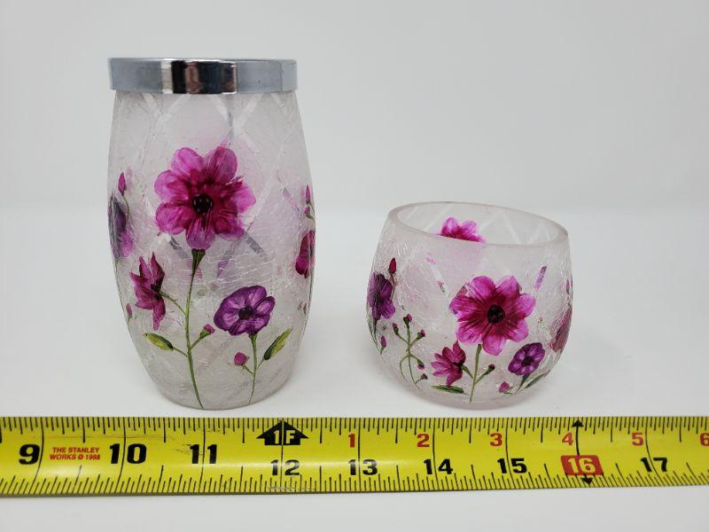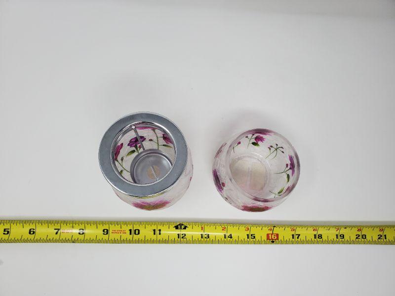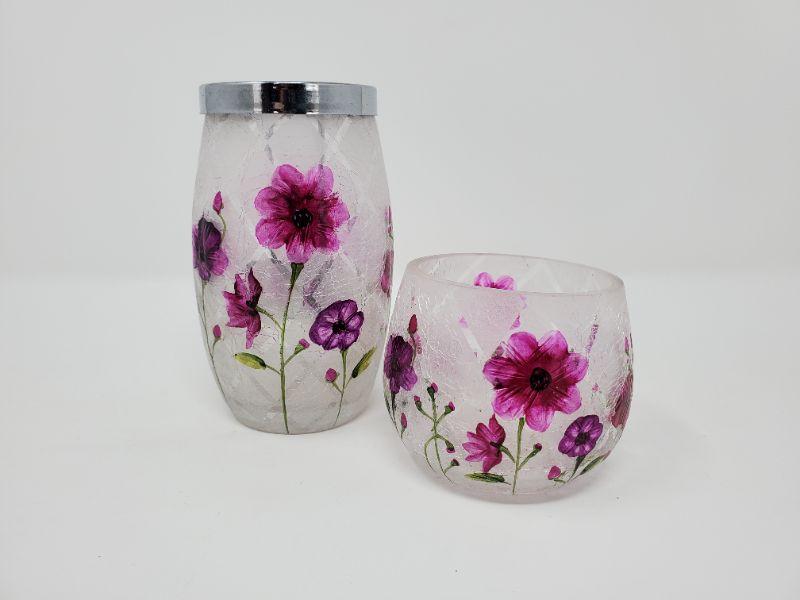 BRIGHT COLORED FLORAL CANDLE HOLDERS SET OF 2