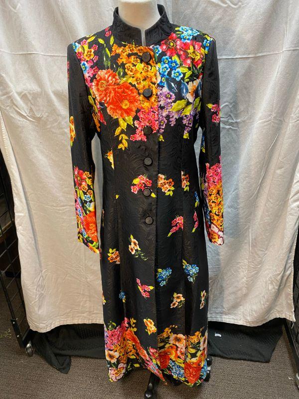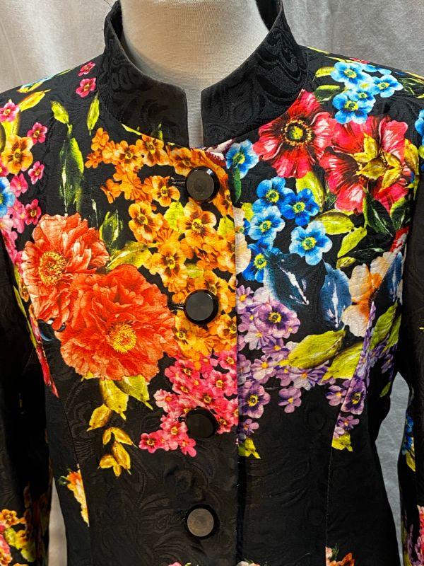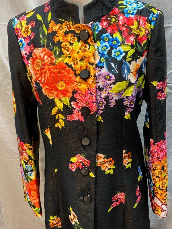 Bright Floral Asian Inspired Trench Coat Formal Jacket by Jing Han Size XXXL **Read Description Regarding Size** YD#020-1220-02054