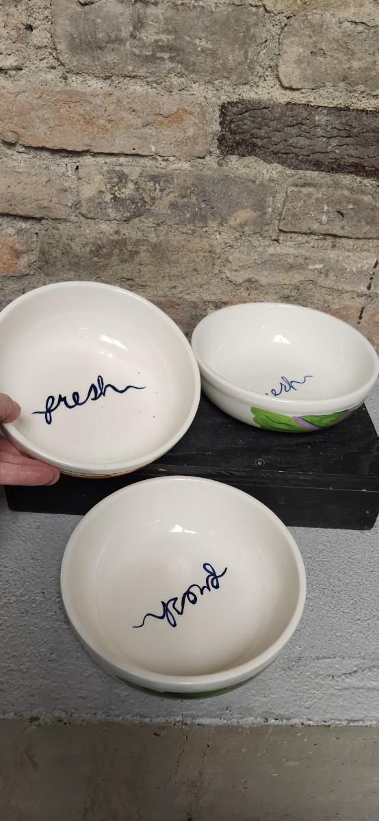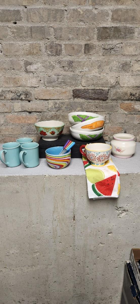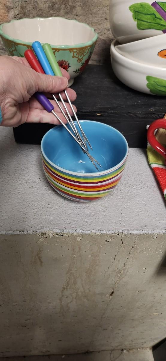 Bright and happy items for your kitchen. That cute little bowl with 4 fondue forks!!