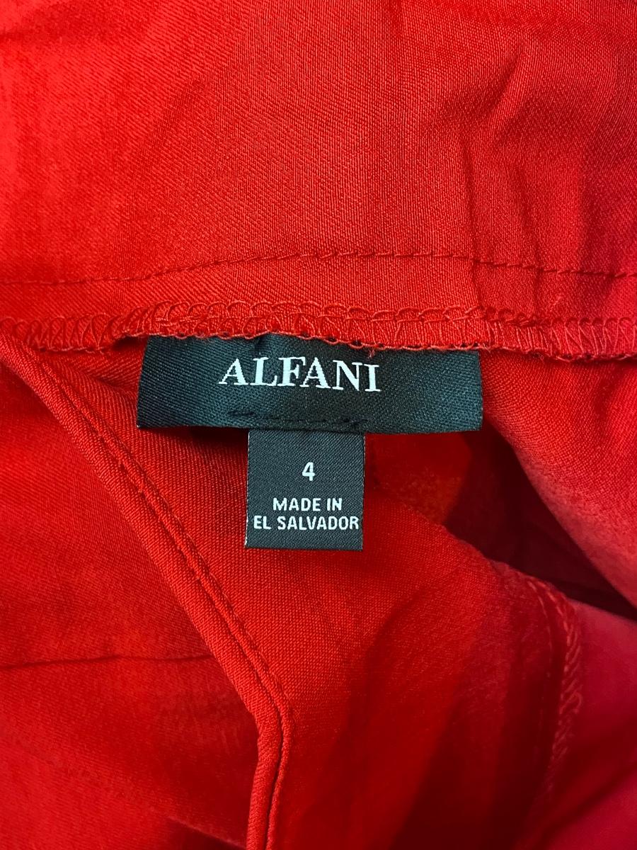 Bright red stretch fit slacks from Alfani. Size 4. Creased legs. Seem to be possibly skinny or slim fit.