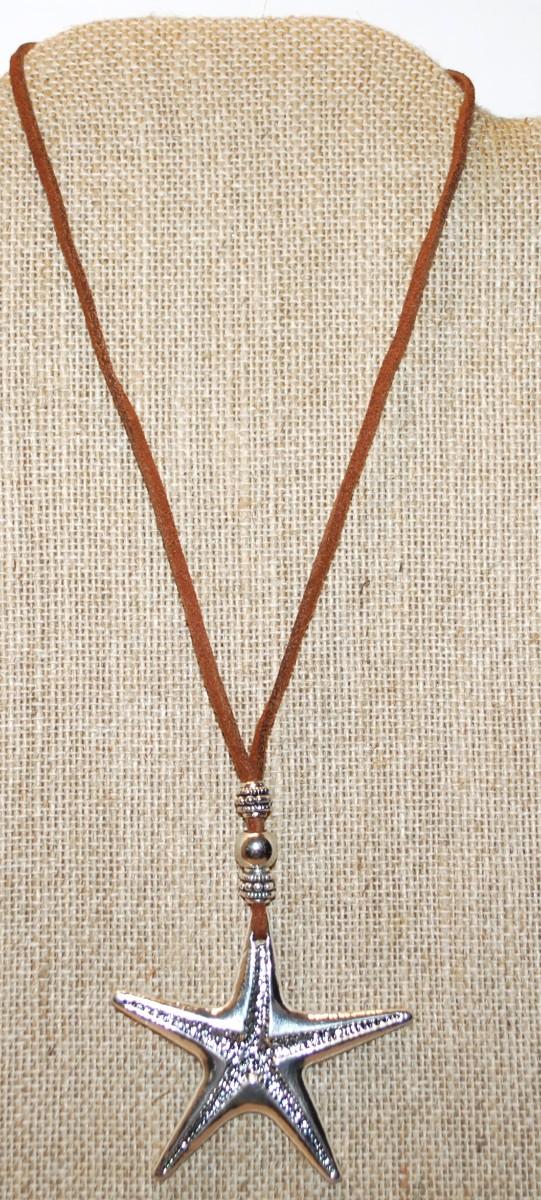 Bright Silver Colored Starfish PENDANT (2" Diameter) with Bead Accents on a Rope Style Necklace Chain 15" L