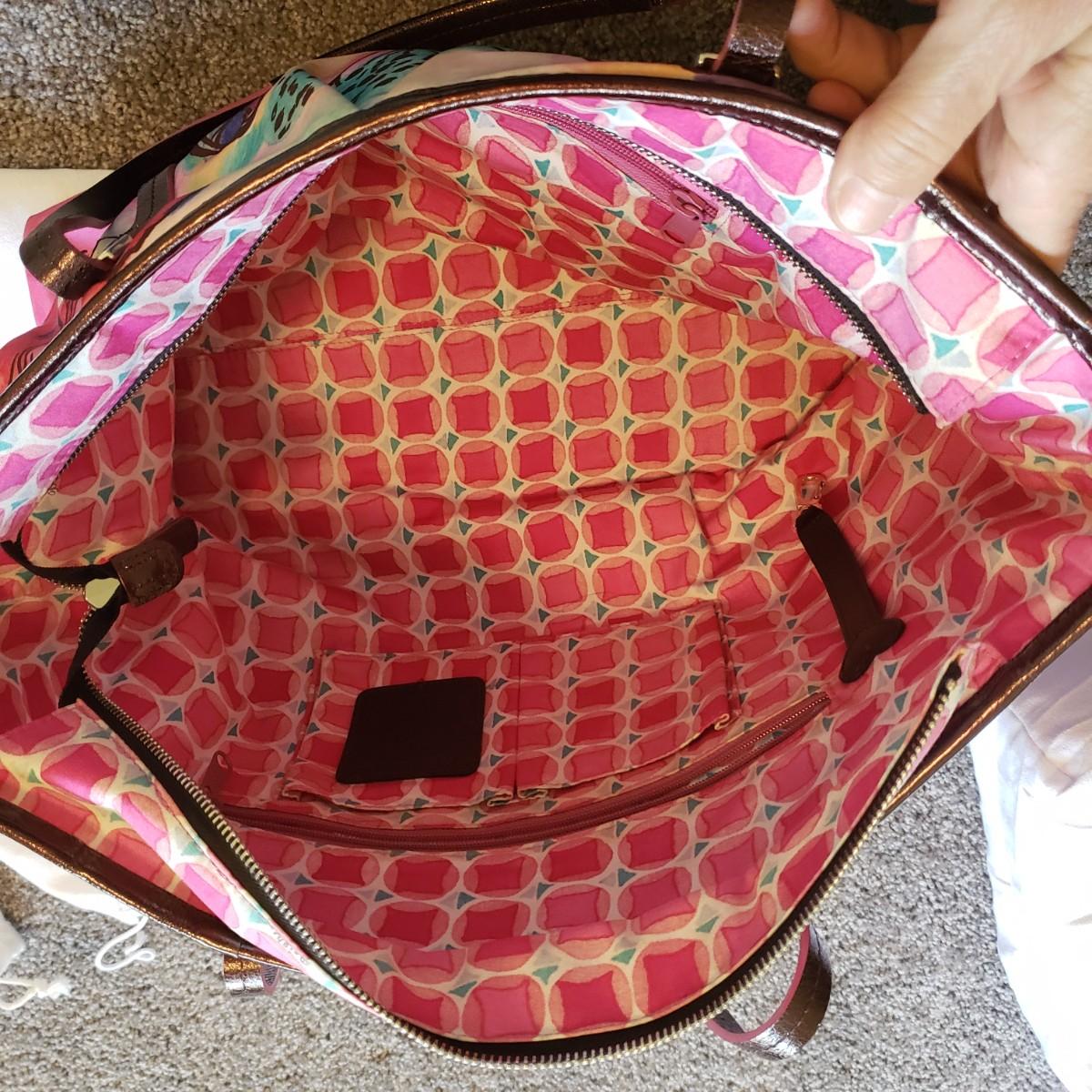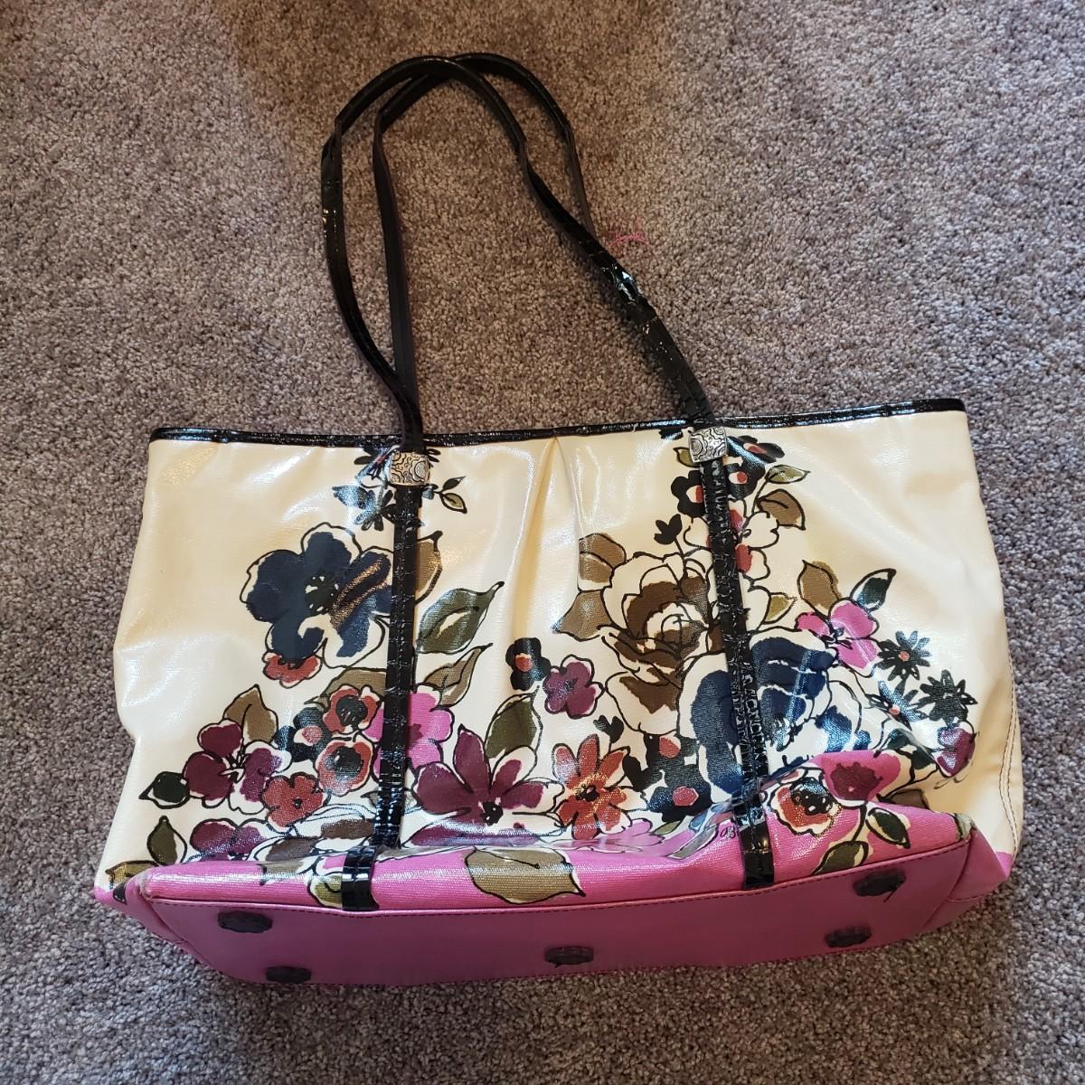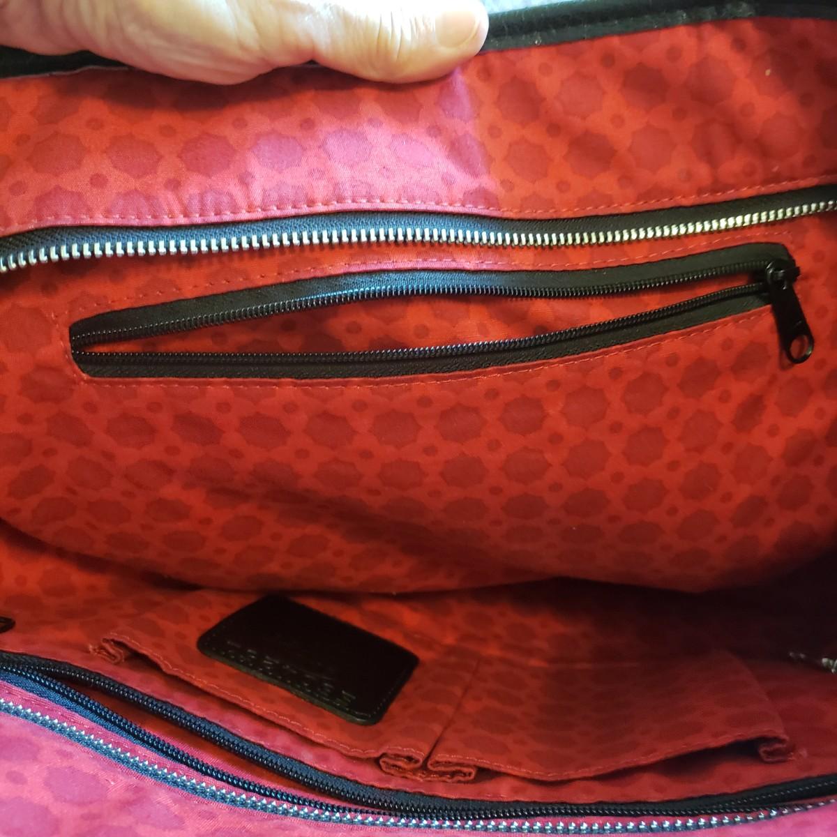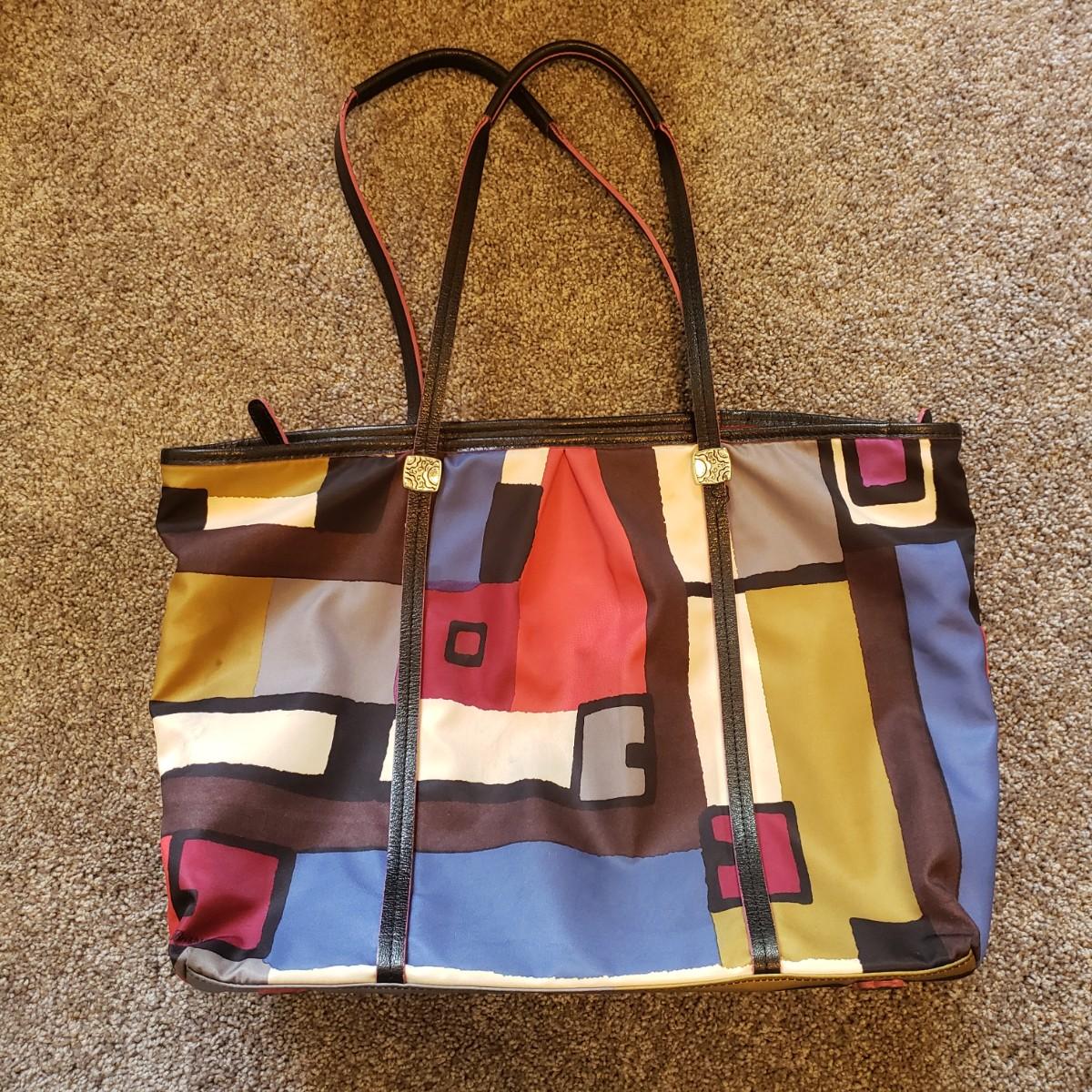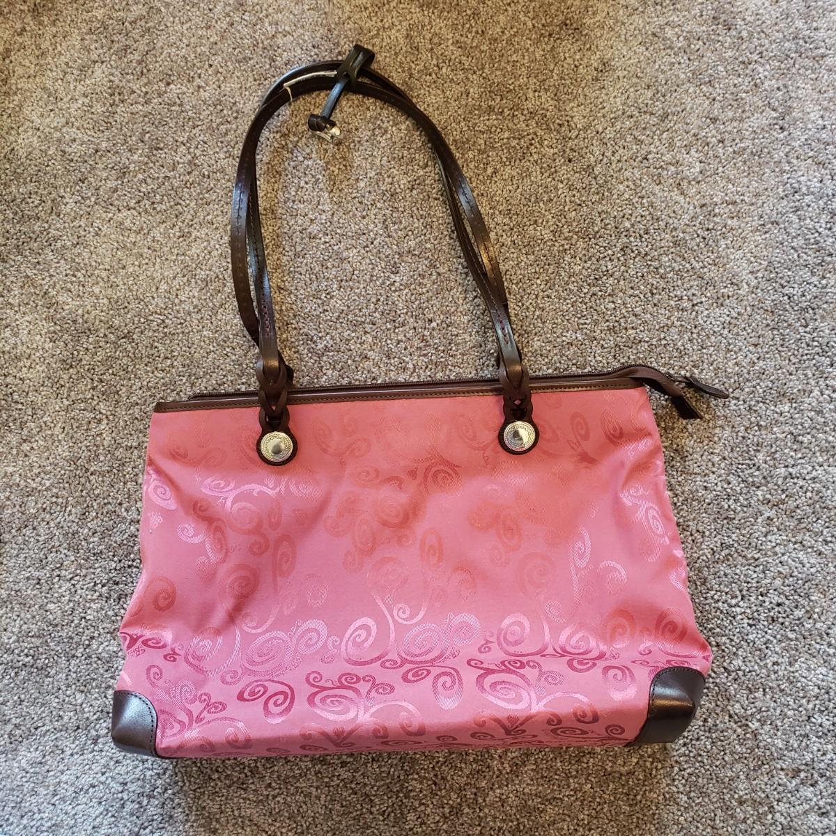 This lot features four Brighton brand bags and eight belts. The bags measure approximately 18" x 6" x 21"H with strap measurement included. Two of the bags have a satiny material, one a canvas and the last is a plastic, waterproof material. The belts appear to be leather with metal features. See pictures for lengths. Four of the belts have a reversible feature, by pulling apart the metal, and turning it, see last pictures for details.
