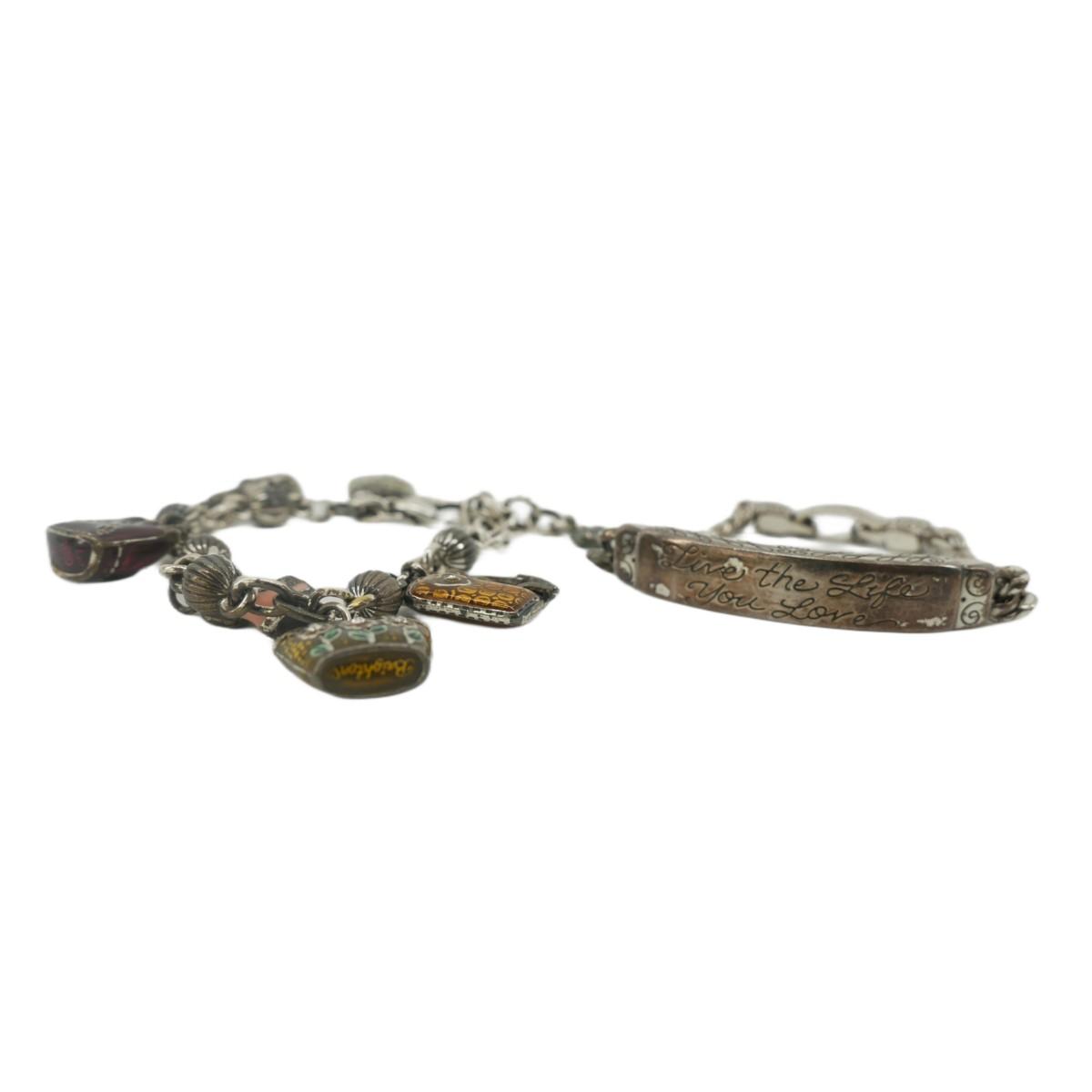 Two Brighton bracelets, one charm bracelet and another that reads "Live the life you love". Good condition, but could use a good cleaning.