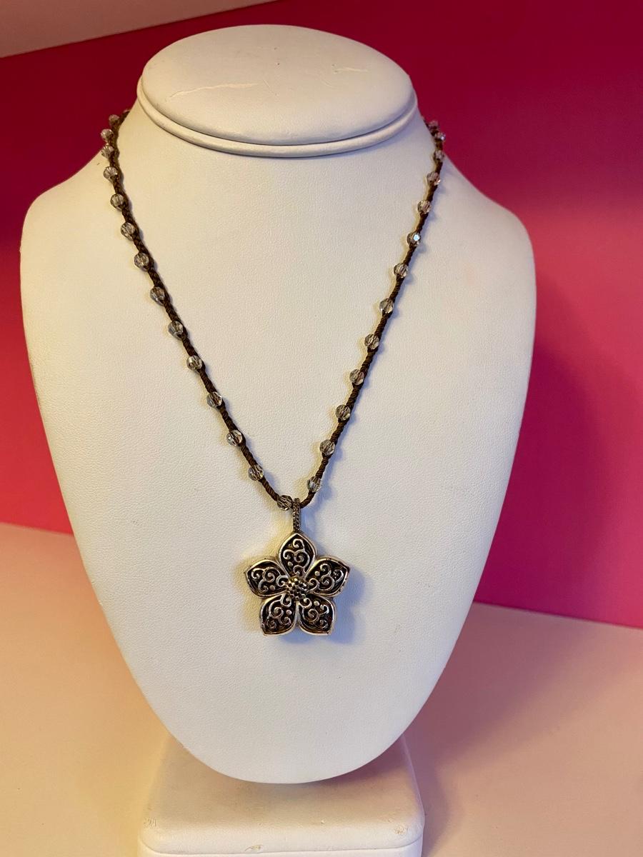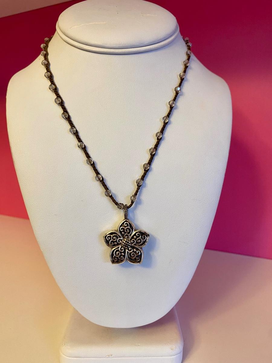 Brighton Flower Pendant on Brown and Beaded Necklace