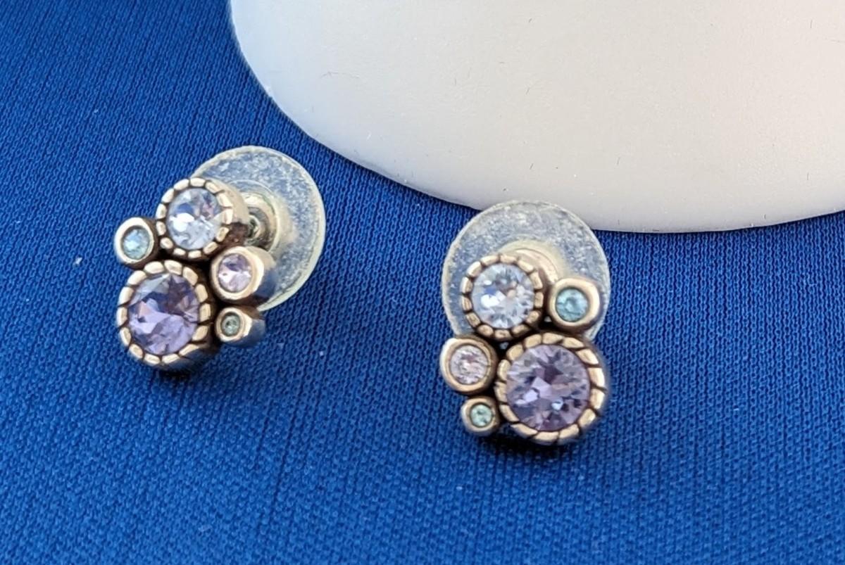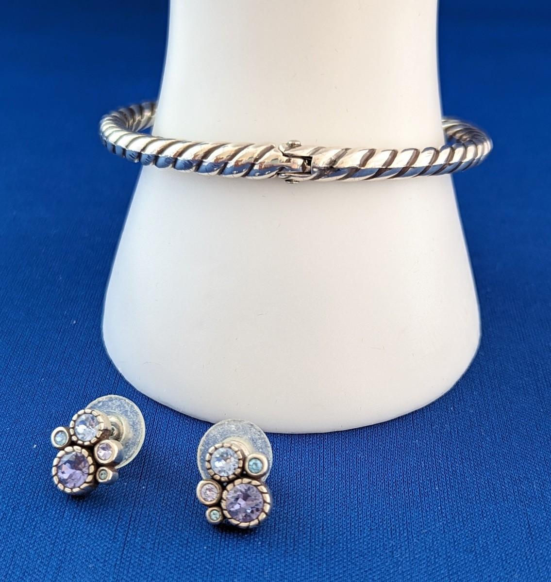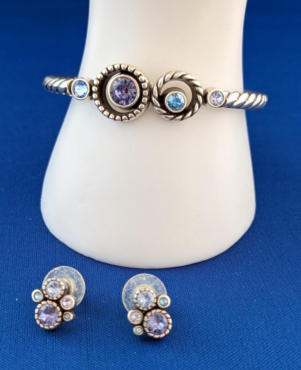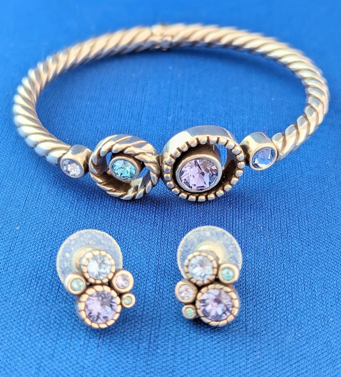 BRIGHTON HALO Hinged Magnetic Bangel Bracelet Lavender & Blue Crystals & matching post earrings.