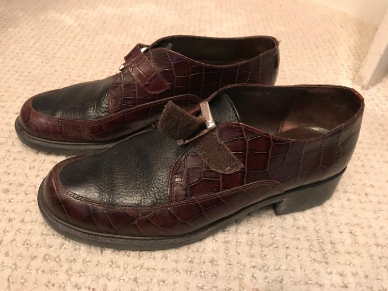 Size 7 1/2 Black leather and brown faux crocidile. Great condition