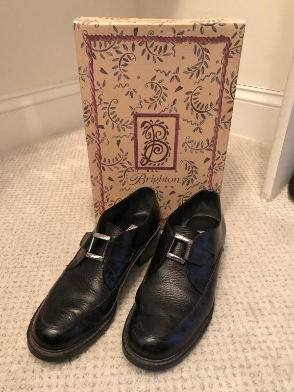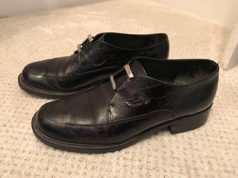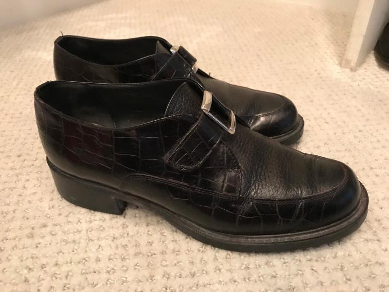 Size 7 1/2 Black leather and faux crocidile with silver buckle. Great condition