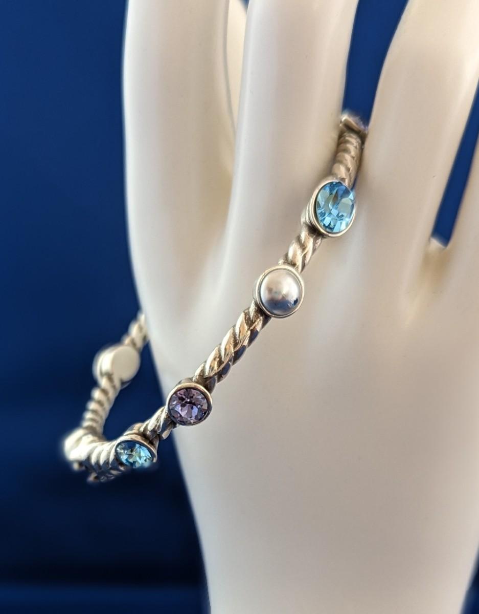 Brighton “MONTE CARLO“ Blues Swarovski Crystal Glass Pearl Hinged Magnetic Bracelet