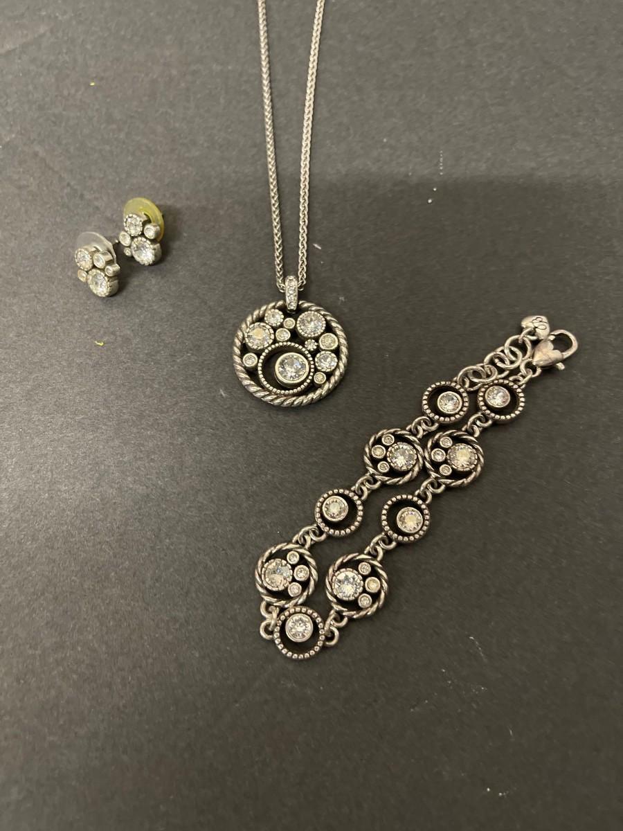 Brighton Silver Halo 3 Piece Set. Includes: Necklace, 18”; Bracelet, 8” and pair of matching Earrings. Excellent condition.