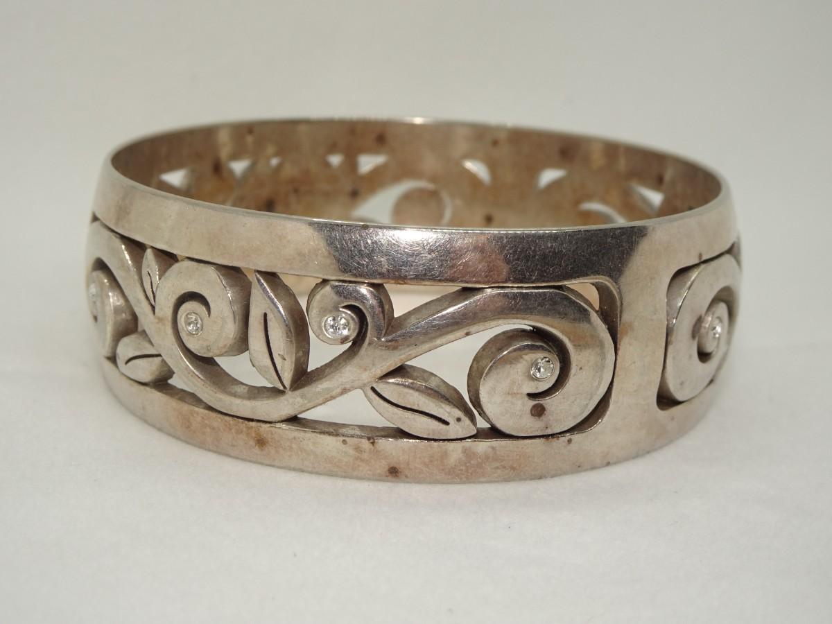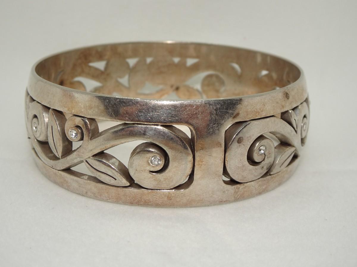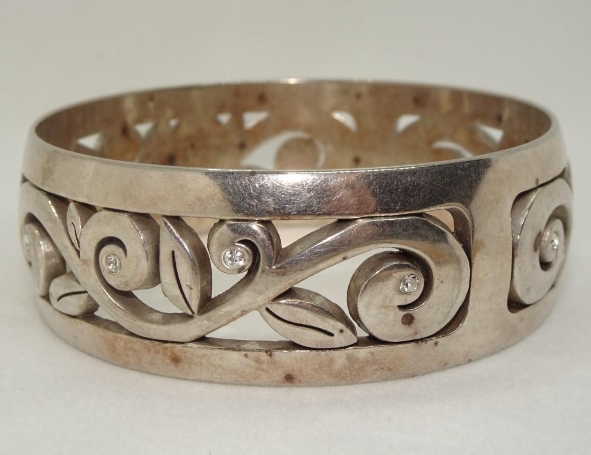 BRIGHTON SILVER PLATED Scroll Rhinestone Bangle Bracelet