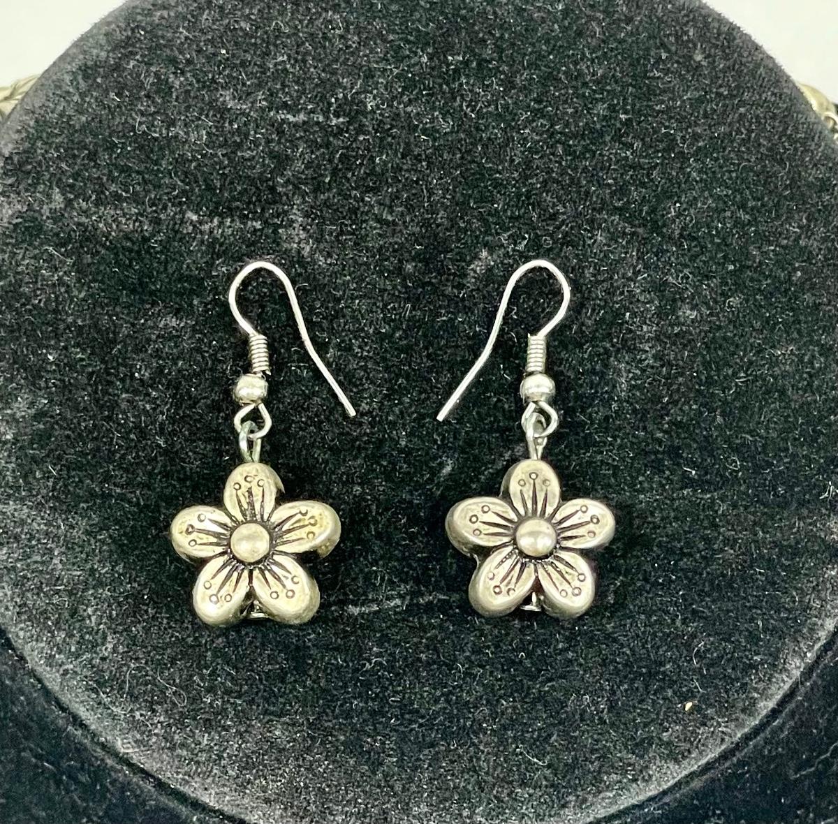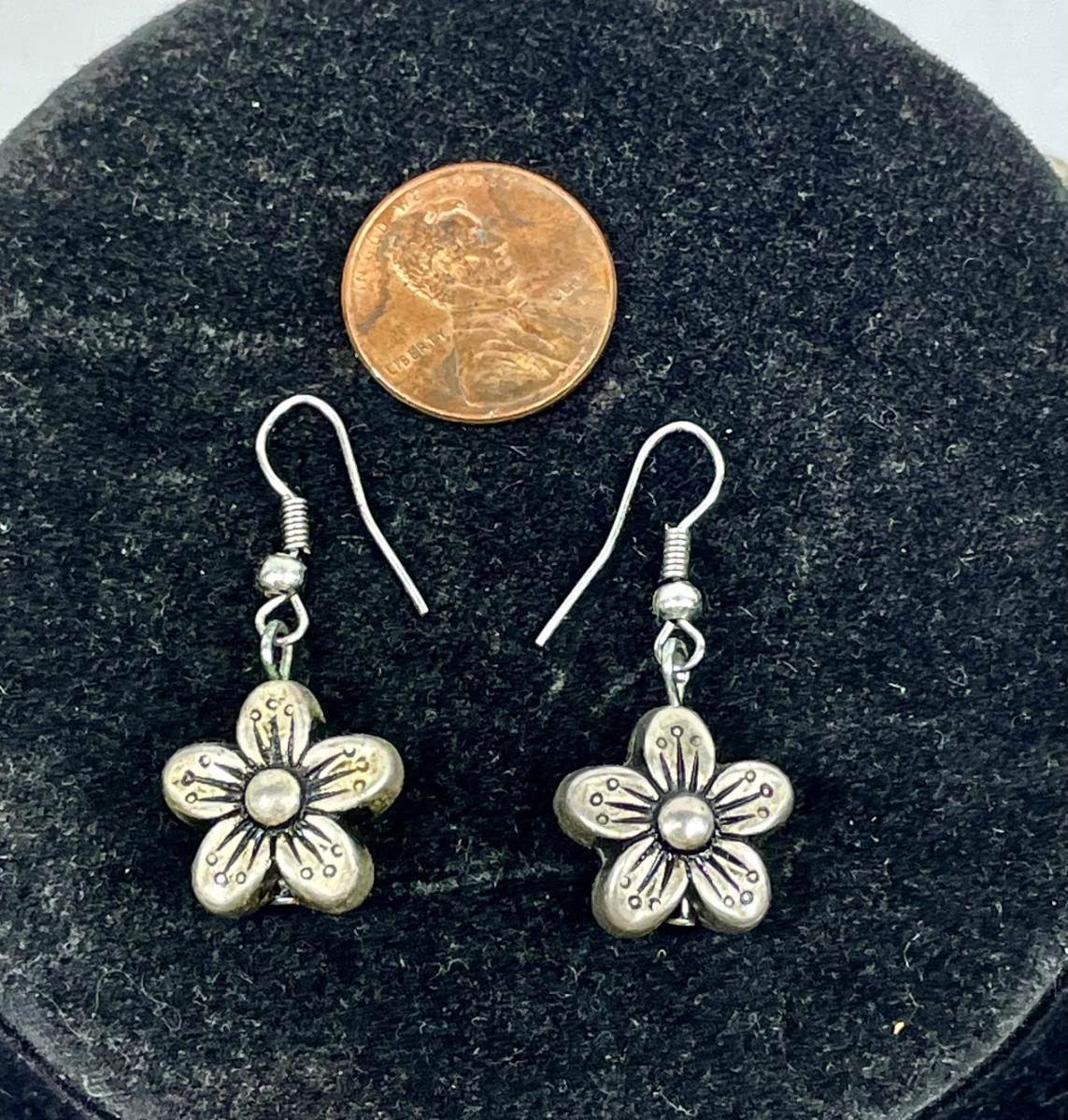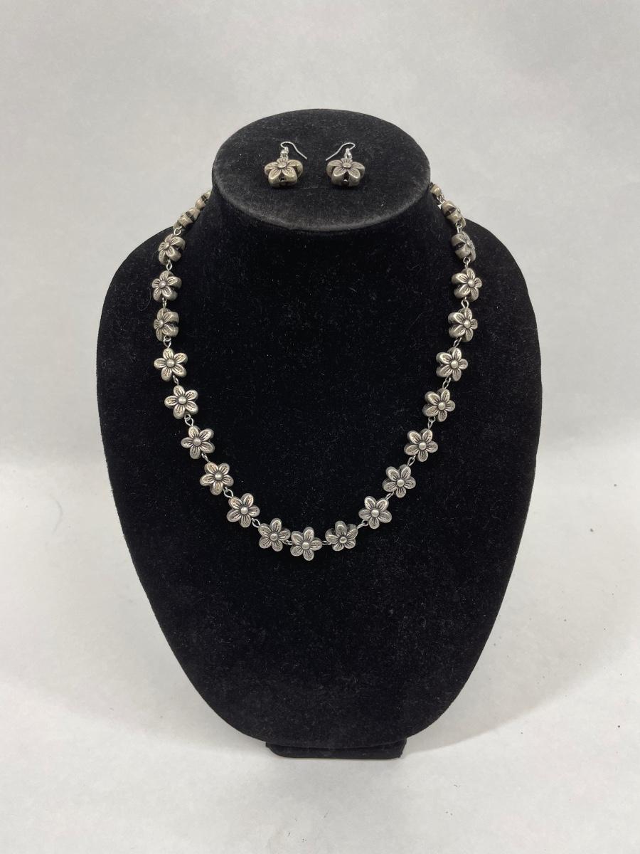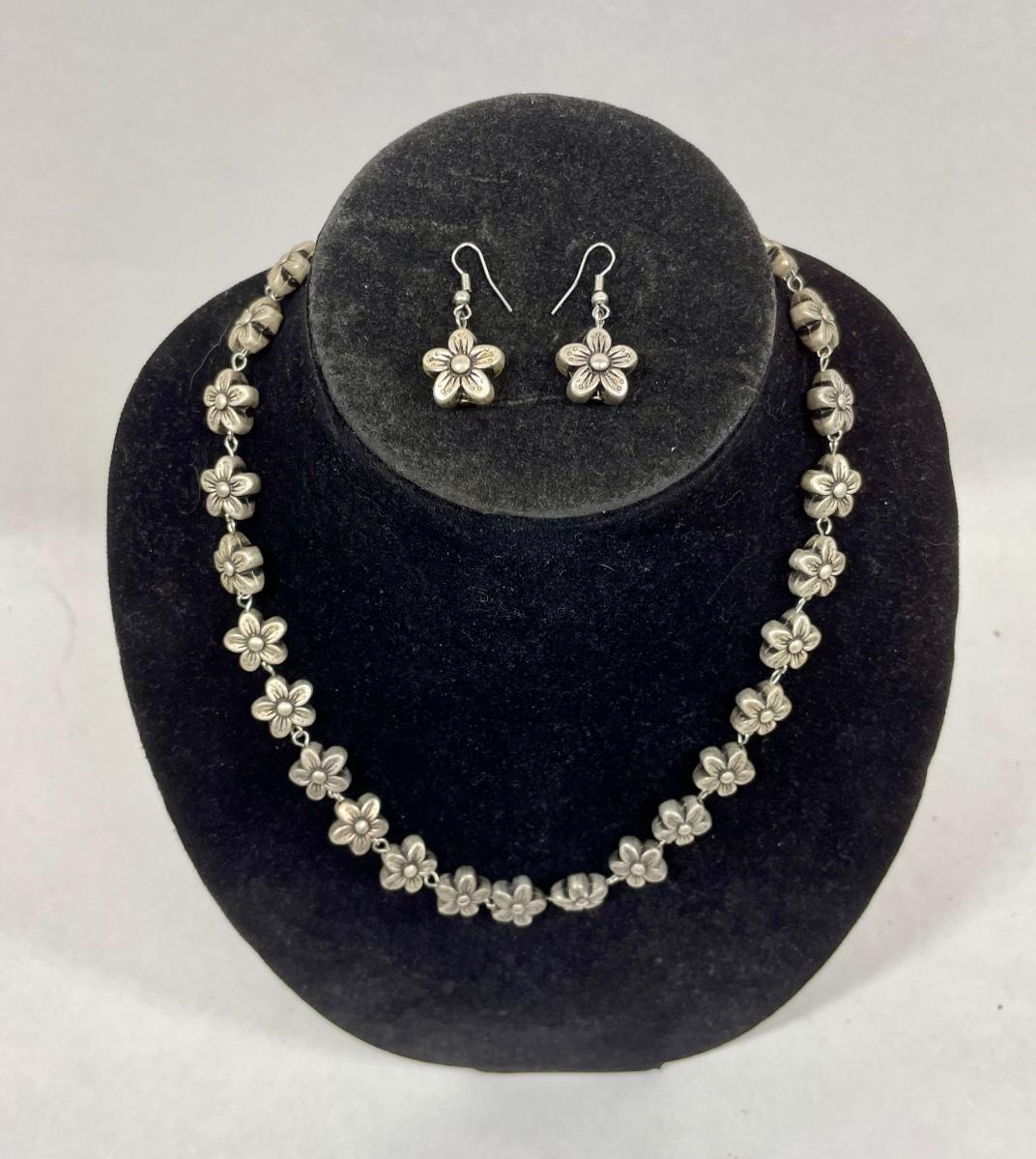 Necklace is approx 20” long. Earrings are for pierced ears. See photos for relative size. In great condition.